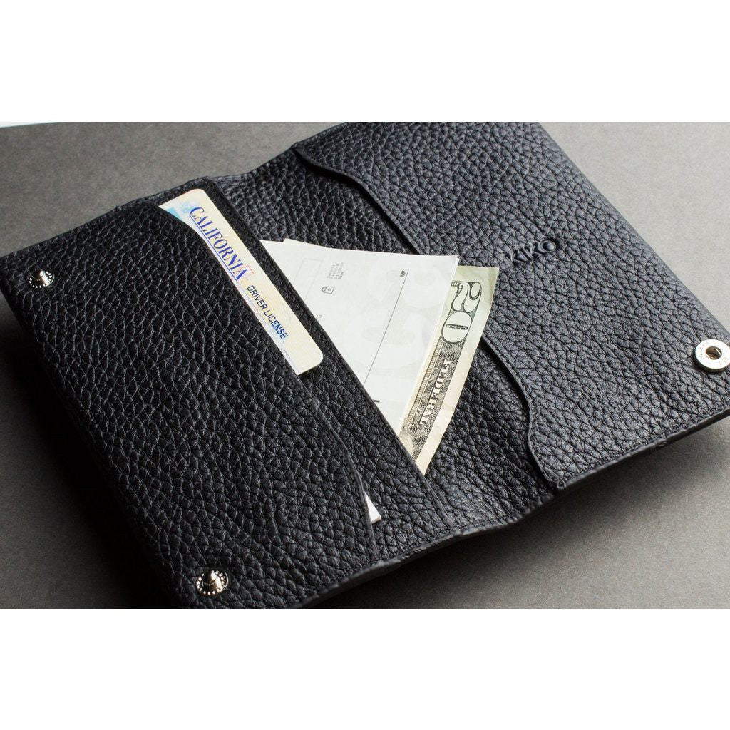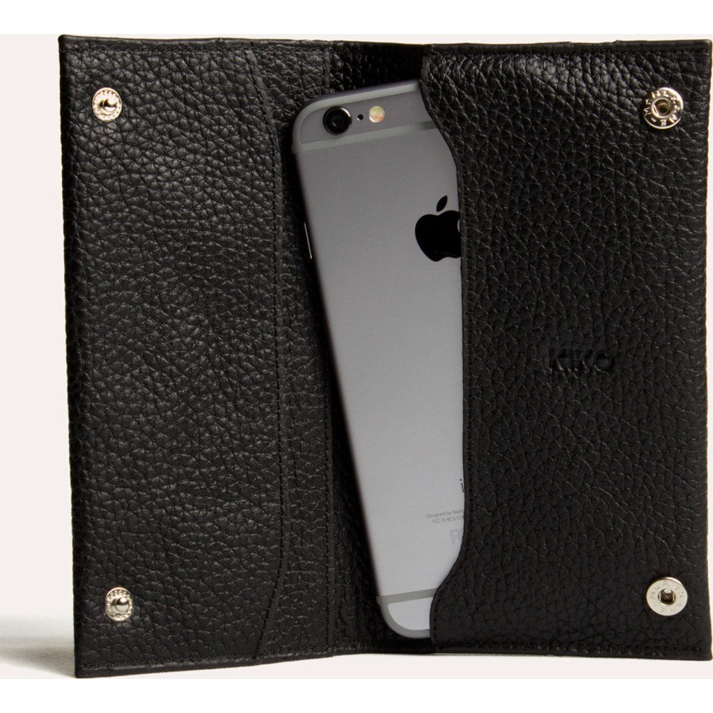 The Kiko Leather iPhone 6 Wallet is a slim and simple fold-over design, constructed from hand glazed cowhide leather. With one sized reserved for your iPhone, the other makes rooms for cards, cash, and any other scraps you collect along the way. A 2 button closure keeps it all secure while you're on the go.
