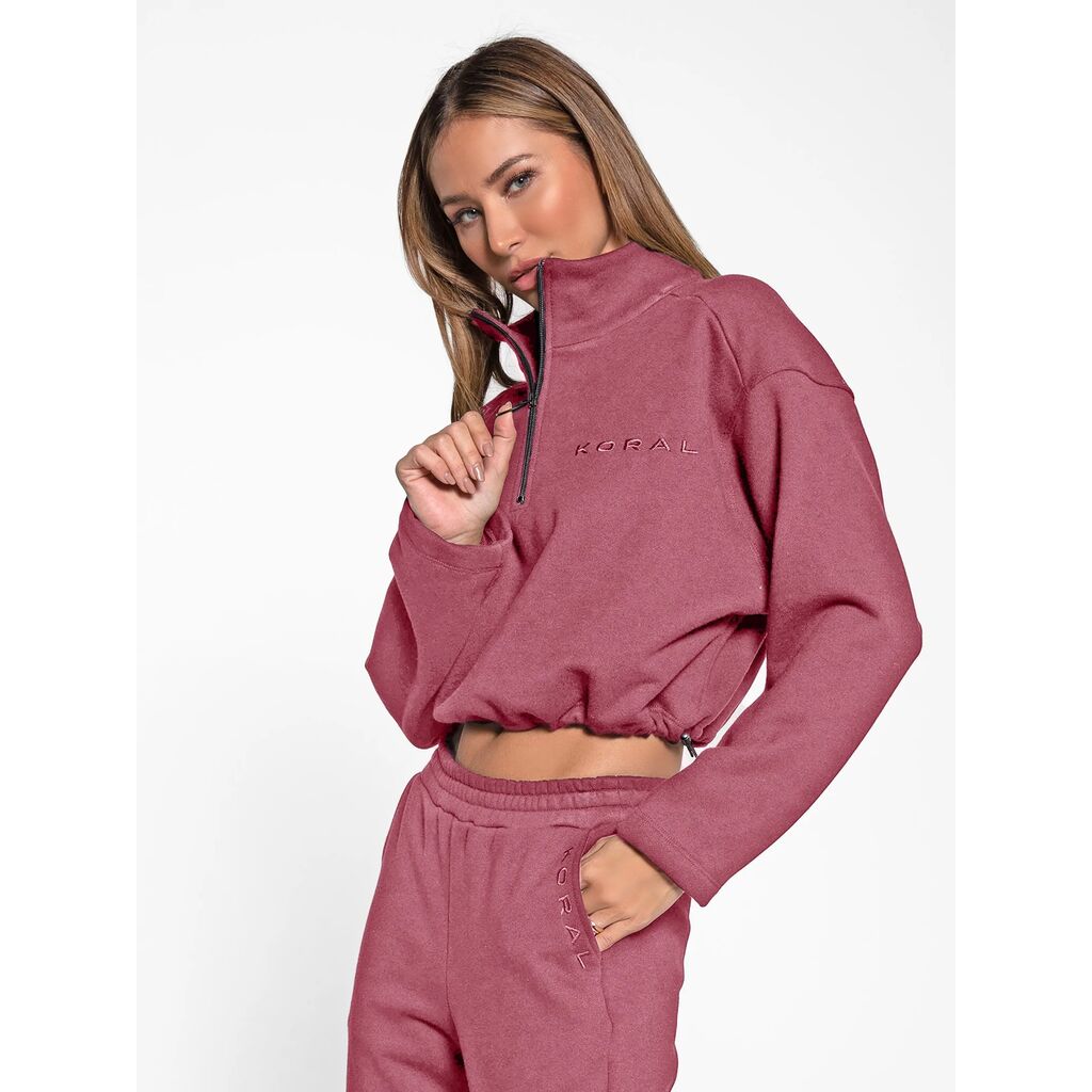 Koral presents Dylan Zip Pullover that gives you the ultimate support when you do the most challenging workouts or sports. It is made from French Terry which is 54% Cotton and 46% Polyester which makes it breathable and comfortable. This relaxed long-sleeve pullover can easily transition from a workout to the rest of the day's activities. The cinched hem and 3/4 zip-up give this essential outerwear piece a fun and flirty edit. This breathable pullover for women comes in 5 different sizes. It is suitable for everyday use and also for the gym, yoga, cycling, swimming, or any other type of sports. Machine wash only. Do not bleach or iron. It will be a perfect gift for your friends, family, and loved ones.