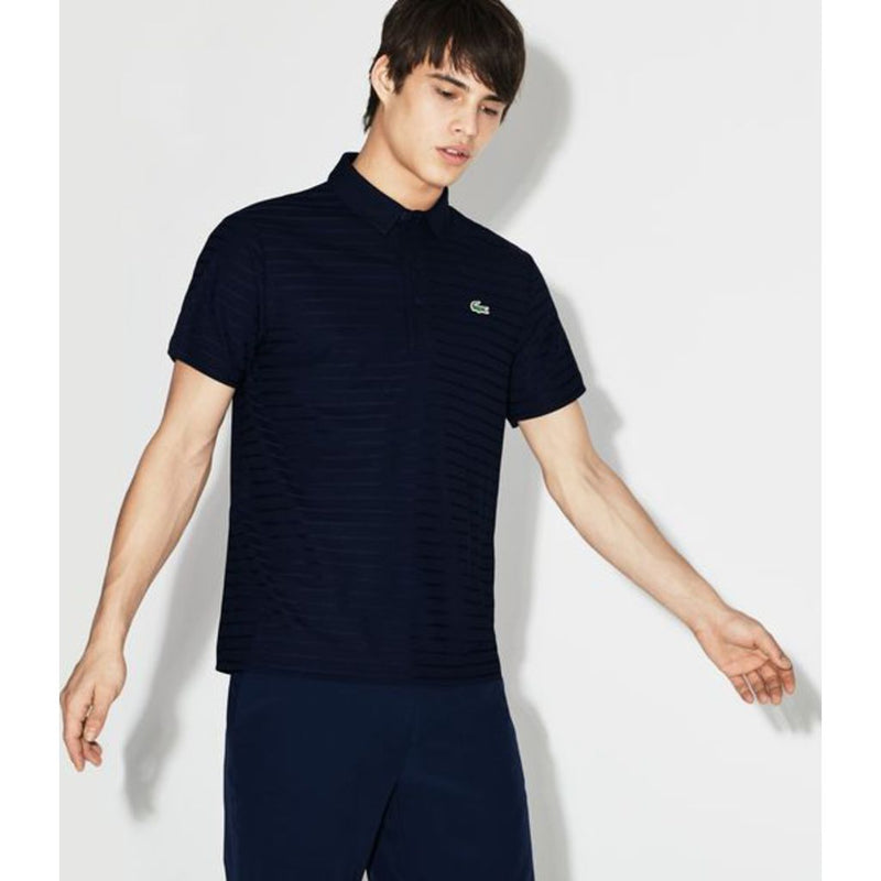 The Lacoste Men's Sport Golf Striped Tech Jacquard Polo is perfect for your next golf game and everyday. Featuring a tone on tone striped design that will elevate your style on the course or in the office. Designed with breathable Jersey fabric, so you will stay comfortable all day.