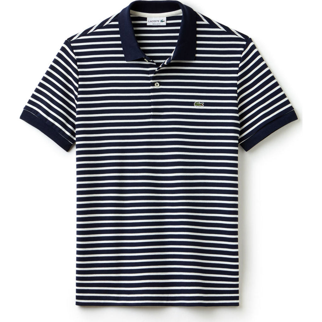 A play on dynamic stripes, the Men's Striped Pima Polo from Lacoste has a resolutely contemporary flair with just a hint retro styling. Boasting a regular fit about the torso and ribbed sleeves, this 100% cotton polo shirt is suitable for most body times and conforms for a sleek athletic look.