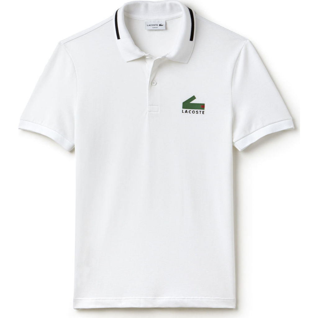 Boasting an elegance and attention to detail that only Lacoste can provide, the Men's Graphic Print Pique Polo reimagines the timeless polo shirt with a slim fit, contemporary neo-croc chest print and vibrantly contrasting collar. Crafted almost entirely from cotton, this white yellow polo features a slim fit that is ideal for those with a lean frame.
