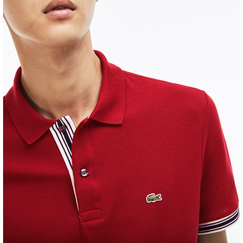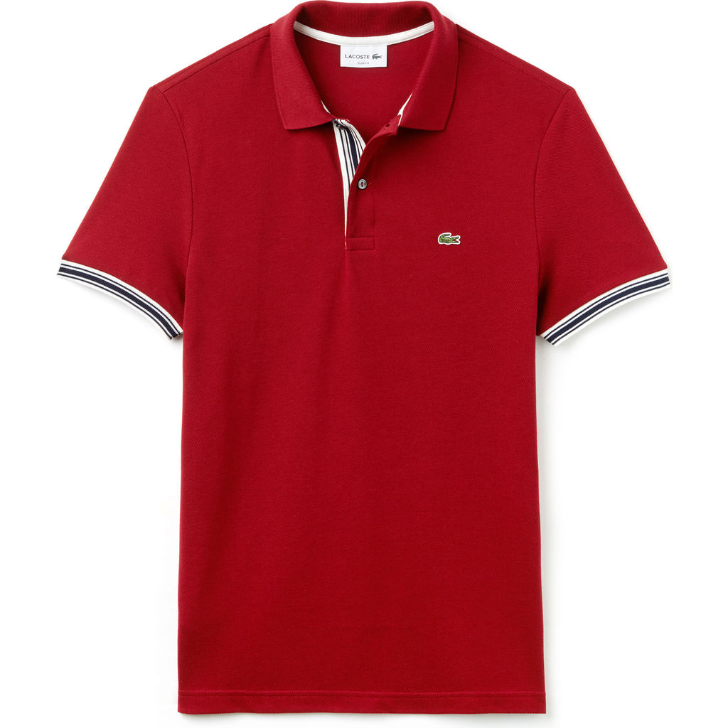 Enhanced by contrasting color, the Red Slim Fit Piped Sleeve Shirt from Lacoste makes use of their timeless polo design and just a hint of contemporary flare. Complete with a two-ply unicolor cotton petit piqué, this shirt is sure to maintain a rich supple feel over time.