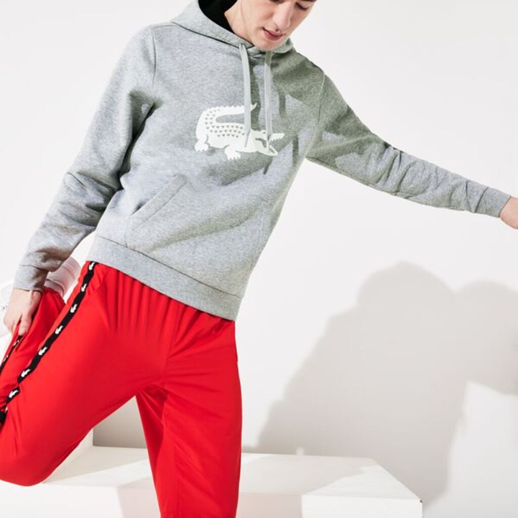 Bring some warmth and style to your workout wardrobe with this cotton-blend fleece Lacoste Sport hoodie. The oversized crocodile print on the chest offers extra flair, as does the crocodile-printed hood lining. This sweatshirt is crafted almost entirely from breathable cotton for maximum comfort and wearability. Pro tip: It looks great with leggings!