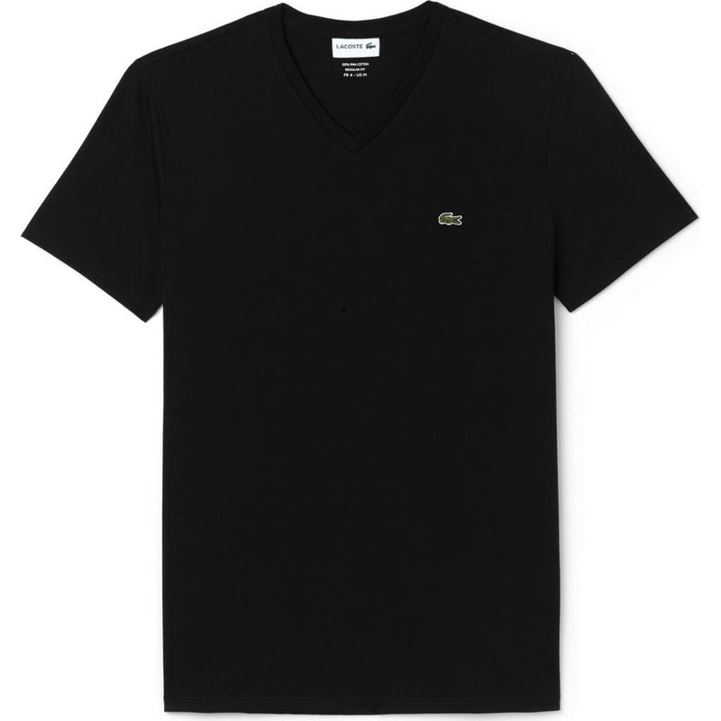 Whether you're headed out for a casual night on the town or lounging around the house, exude understated elegance that only Lacoste can offer with the Black Men's V-Neck Pima Jersey Tee. This Tee Shirt is crafted from 100% cotton for a light weight breathable feel that boasts comfort and a form fitting cut.