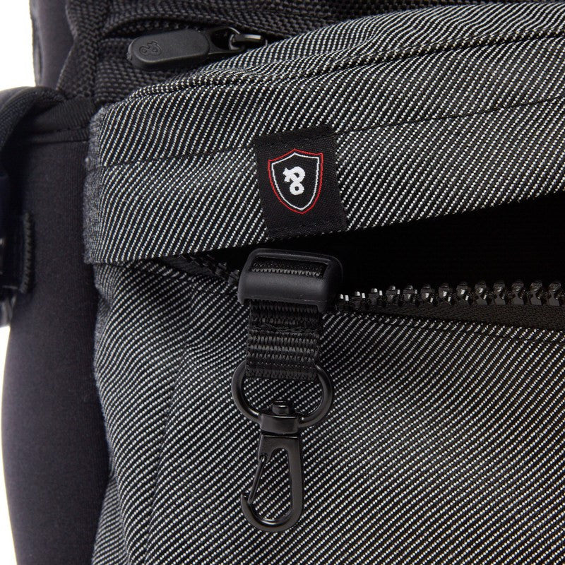 - Custom zipper pulls and printed interior nylon lining