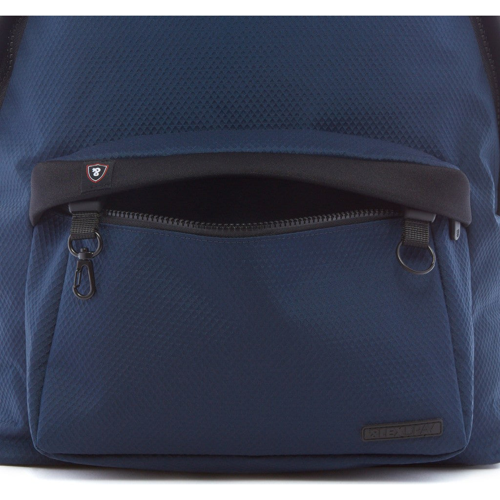 Lexdray expands their Symmetry Collection with a new deep navy hue in custom rip-stop nylon fused with durable mesh. The Rome Pack Backpack features two main compartments, a front zip pouch, light padding along the back side and is finished with padded shoulder straps. Water-resistant, this bag is finished with a custom Lexdray heather gray lining.