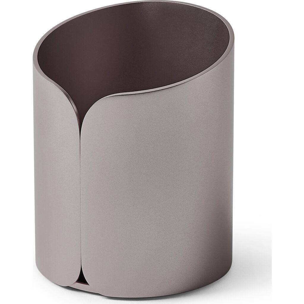 This sophisticated penholder will upgrade the look of any office interior. Crafted in aluminum, this cylindrical pen cup has enough space to store all of your pens. A must-have desk accessory available in green, gold or gun. This city pen cup is designed by Andrea Quaglio and Manuela Simonell.