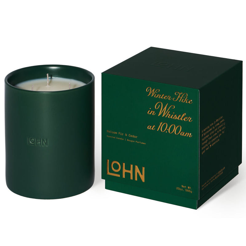 Elevate your space with the Lohn Winter Collection Mega 3 Wick Candle in Winter Hike. Immerse yourself in the crisp, invigorating aura of a Whistler morning hike. With top notes of juniper and rosemary, complemented by cedar and spearmint in the middle, and a base of Balsam Fir and Cypress, this woodsy scent family creates an enchanting, fresh ambiance. Crafted with sustainable coconut and soy wax, this 20ounce candle offers an impressive 90-hour burn time. It's phthalate-free, cruelty-free, and boasts three wicks for an even, long-lasting glow. Embrace the essence of winter with this aromatic masterpiece.