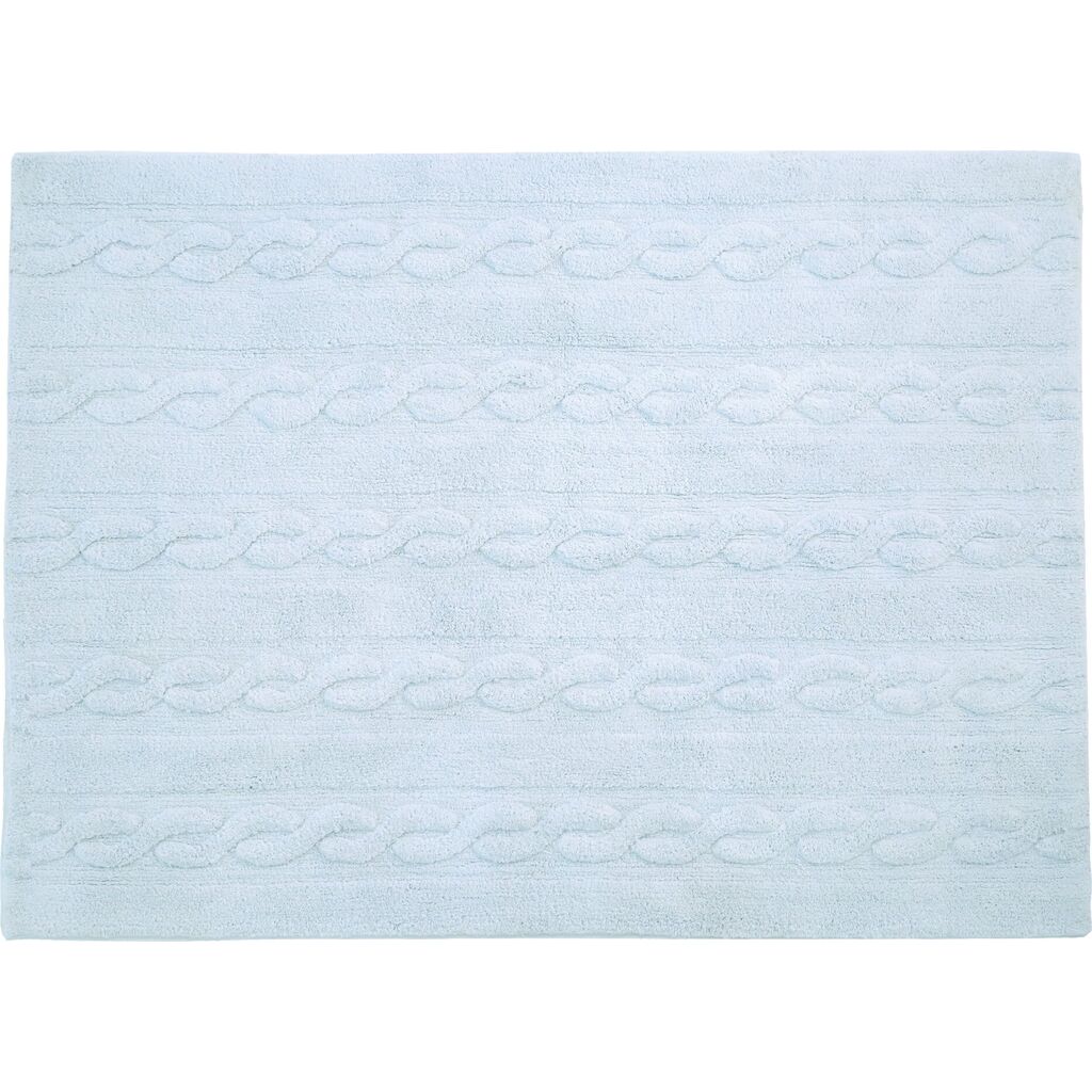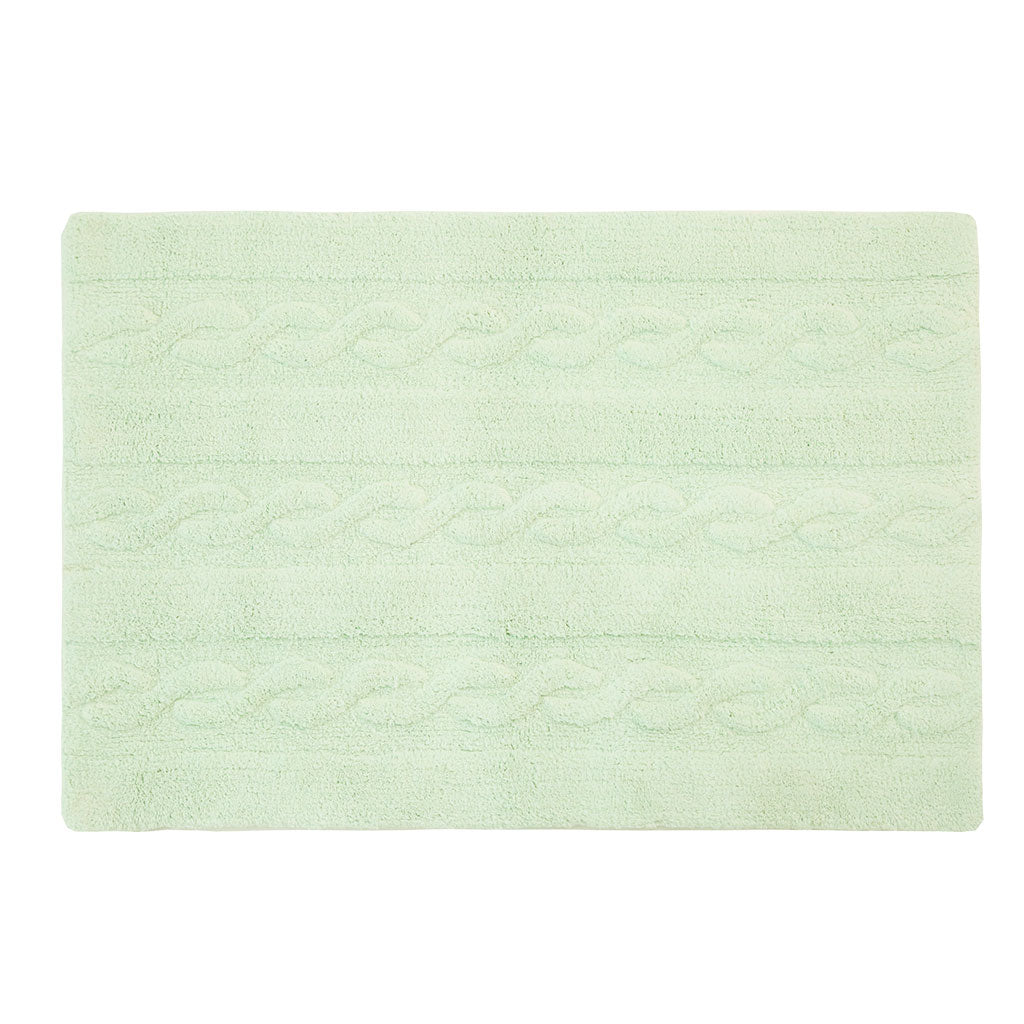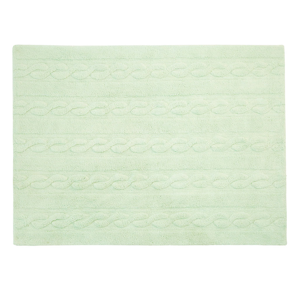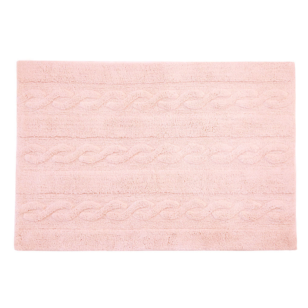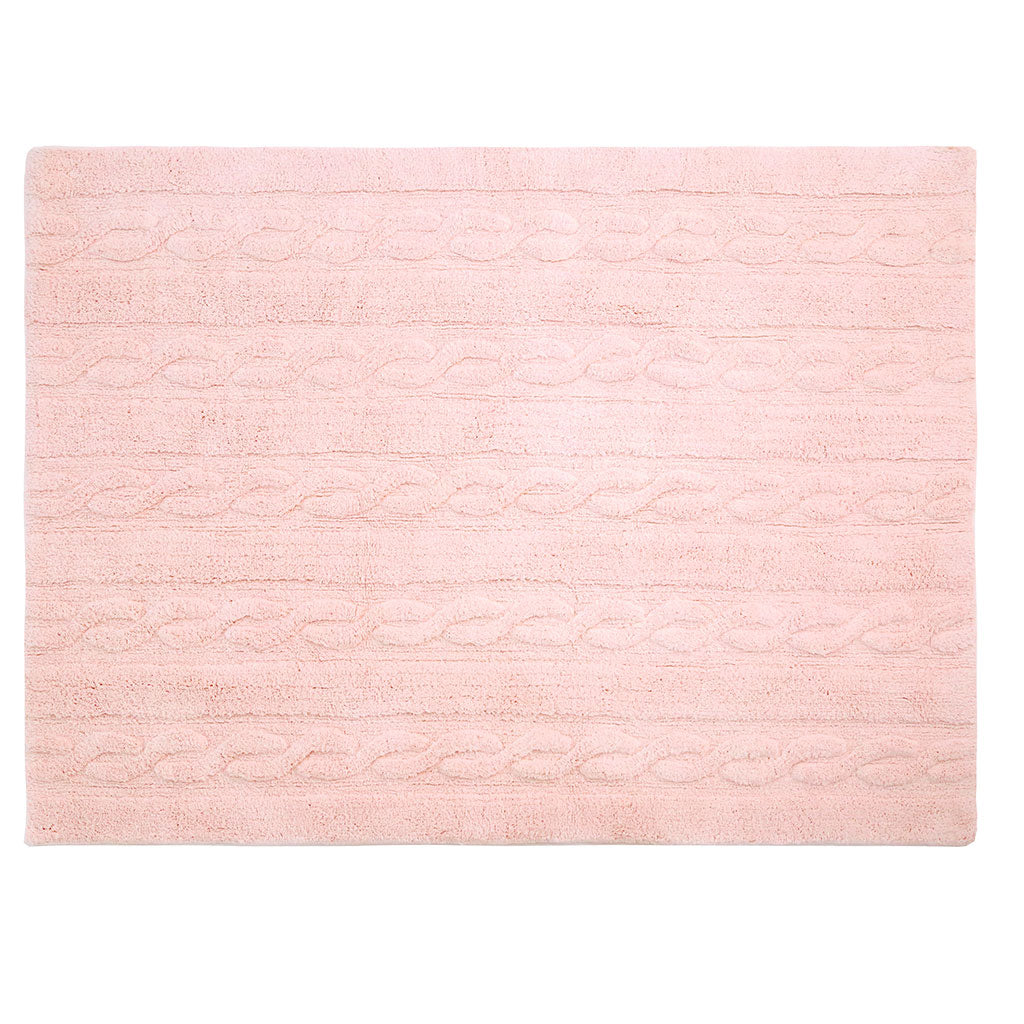 This design is inspired by chunky cable knitting. This rug is machine-washable and it is 100% cotton. Its pastel colors add such a special light, and its texture is perfect for any type of decor. from the living room to the dining room or children's rooms, for both girls and boys.