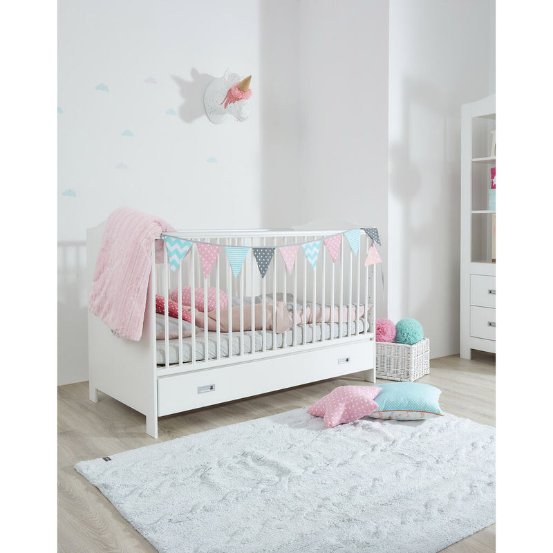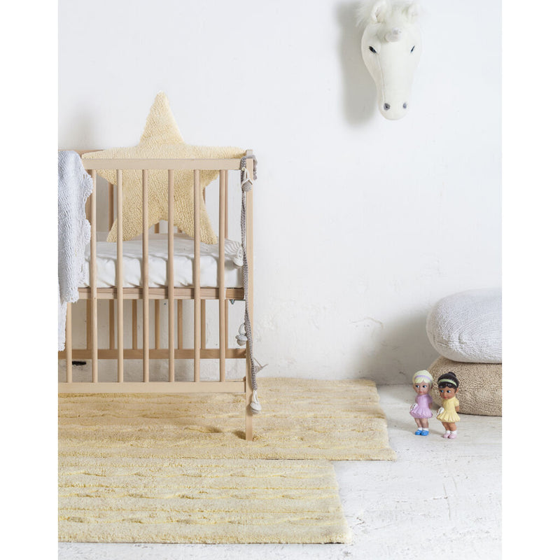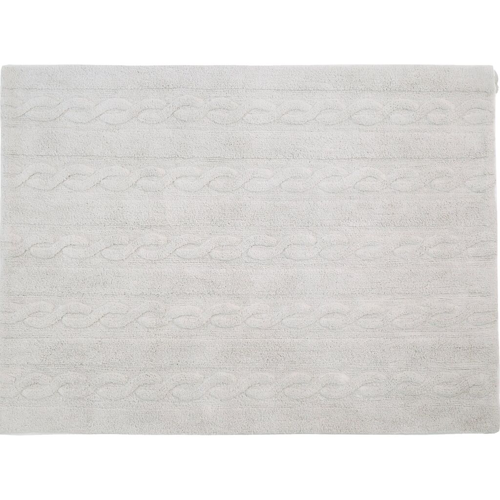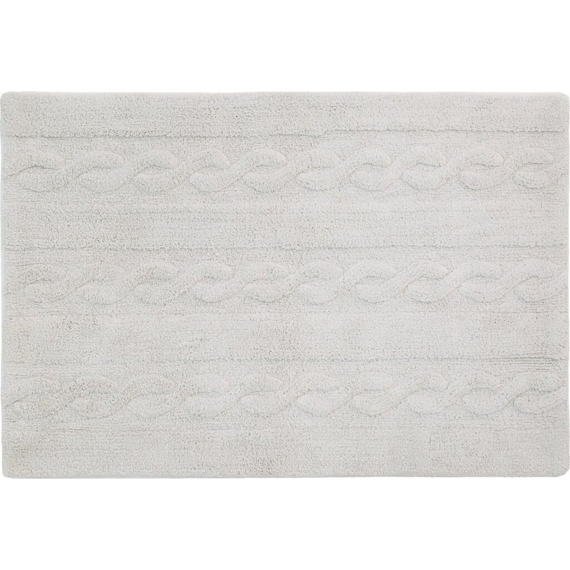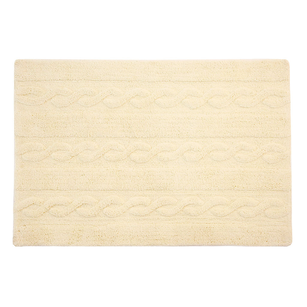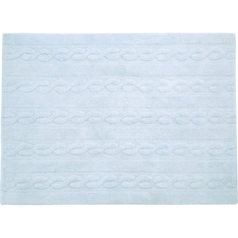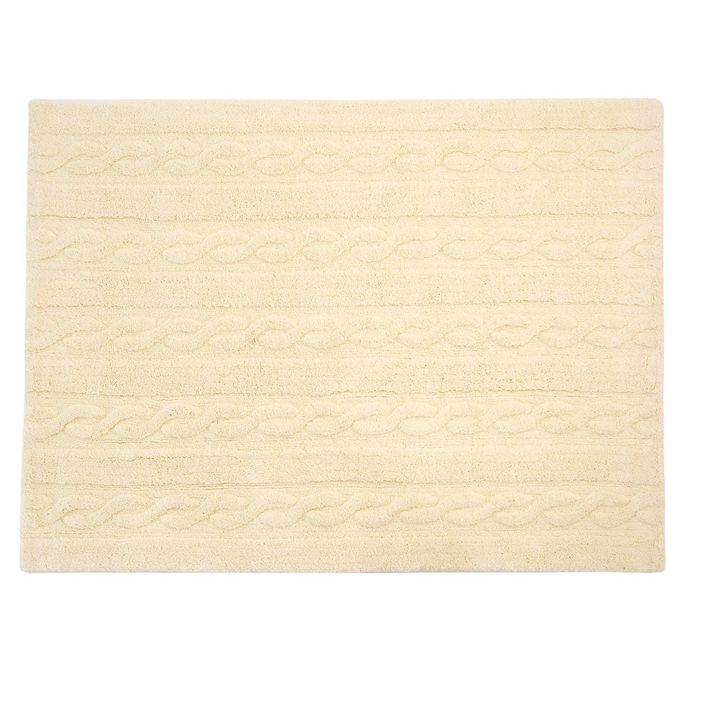 This design is inspired by chunky cable knitting. This rug is machine-washable and it is 100% cotton. Its pastel colors add such a special light, and its texture is perfect for any type of decor. from the living room to the dining room or children's rooms, for both girls and boys.