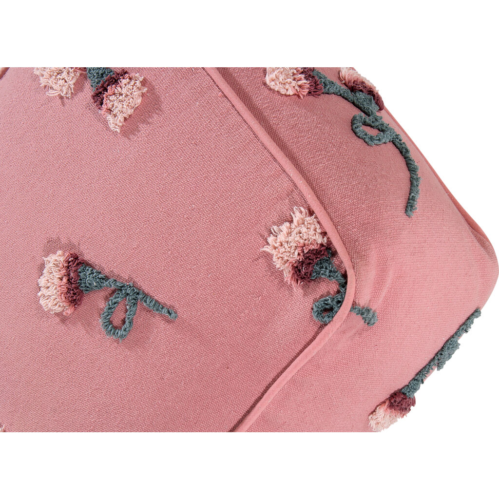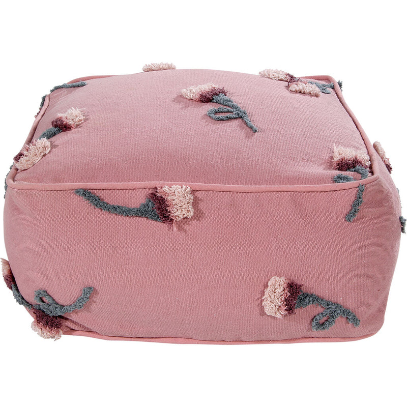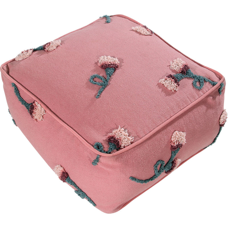 Our new pouffe with a floral design has been inspired by the colors and textures from a botanical garden. Not only as a decorative accessory, it could be used as a footrest, to sit down or, if you put a tray on it, it can serve as a table. Being a handmade pouffe, every woven flower has been carefully perfected with scissor, which gives a slight relief with respect to the rest of the designs. The cover is removable with a zipper for easy washing and the inner cushion is filled with expanded polystyrene balls.