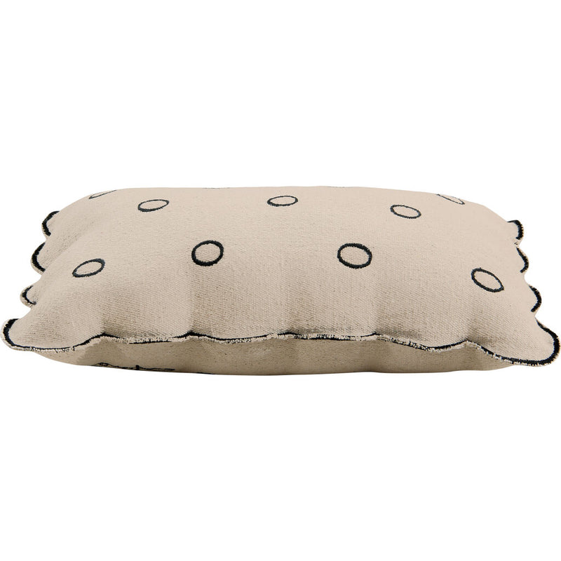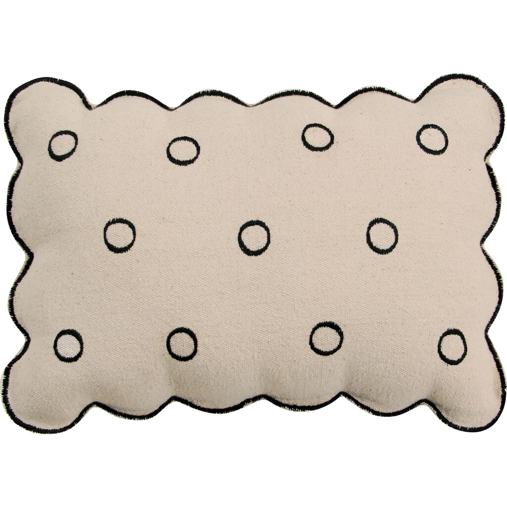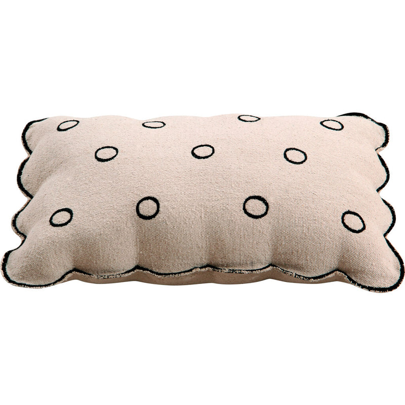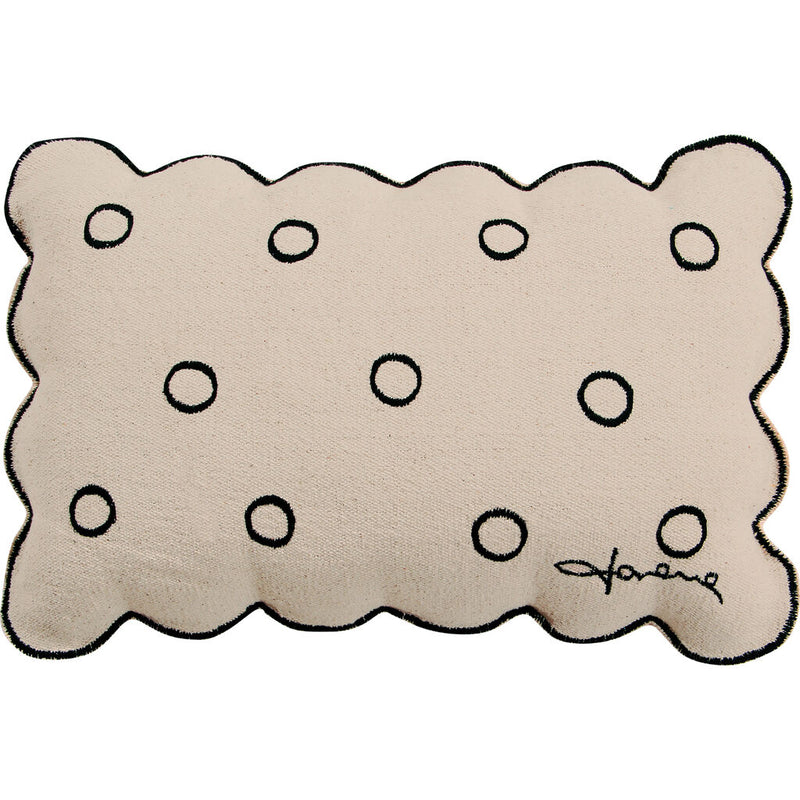 Washable knitted cushion shaped as a rectangular biscuit with rounded edges. The dots resembling the typical cookies holes, which gives a more realistic look. This piece is perfect for nurseries and kids rooms, for both girls and boys. You can wash it directly in your washing machine, without taking out the filler!