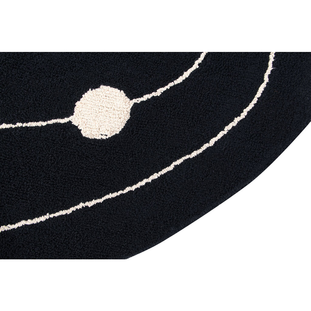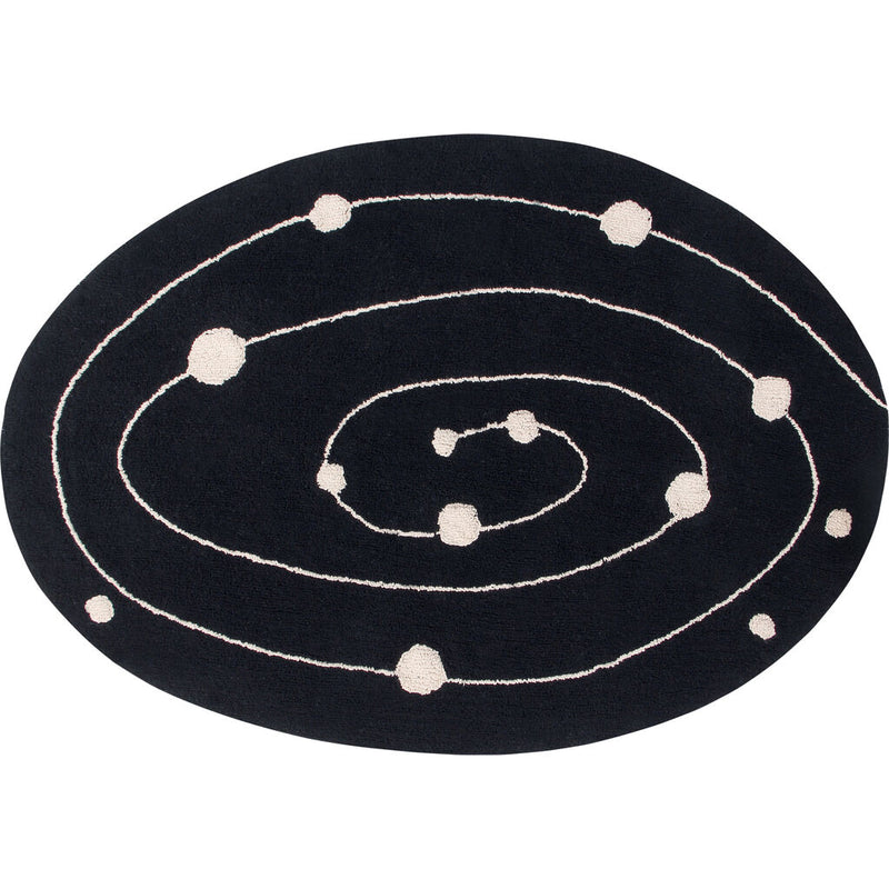 The Galaxy collection comes as one of the great inspirations of the season - the imagination is limitless! The Milky Way rug is 100% cotton and washable in a domestic washing machine. Oval in desgin, a spiral in the form of the Milky Way and the various planets are traced in a natural cotton-color on a black background. It is the first Lorena Canals children's collection in black and natural colors, a trend that suits children's bedrooms, whether girl's or boy's, and also living rooms, dining rooms and bedrooms. Hand-made by craftspeople, its natural dyes make it safe and, being cotton, it is light, soft and pliable.
