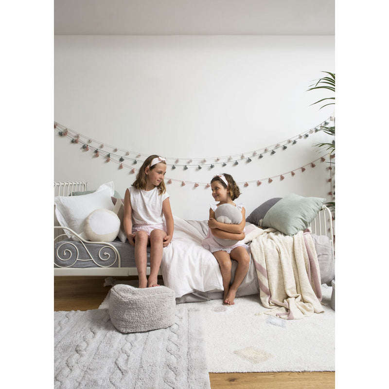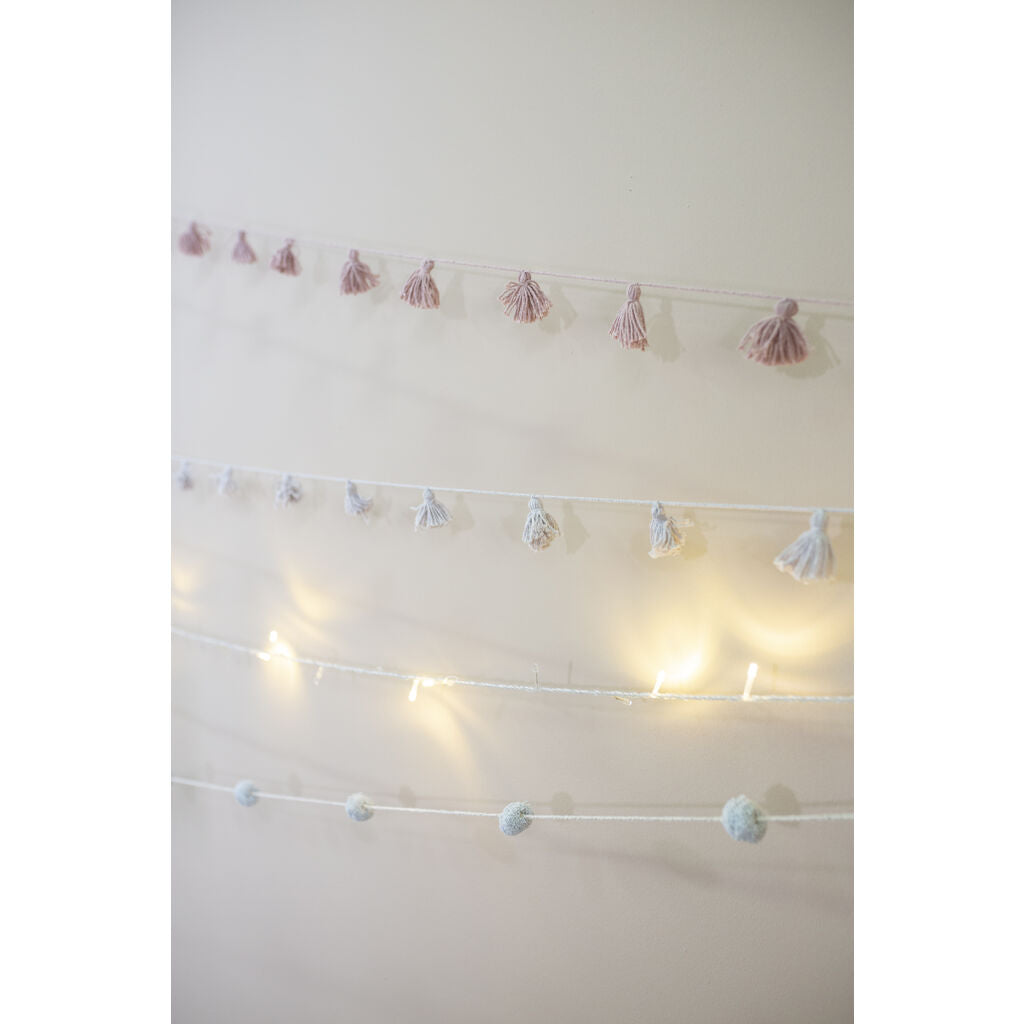 Let your imagination fly with the braided cotton garland of 5 meters, perfect to decorate your children's room. It is made with mini cotton tassels in match color placed with a distance of 12 cm between each other. Comes rolled up with a gift box in kraft paper.