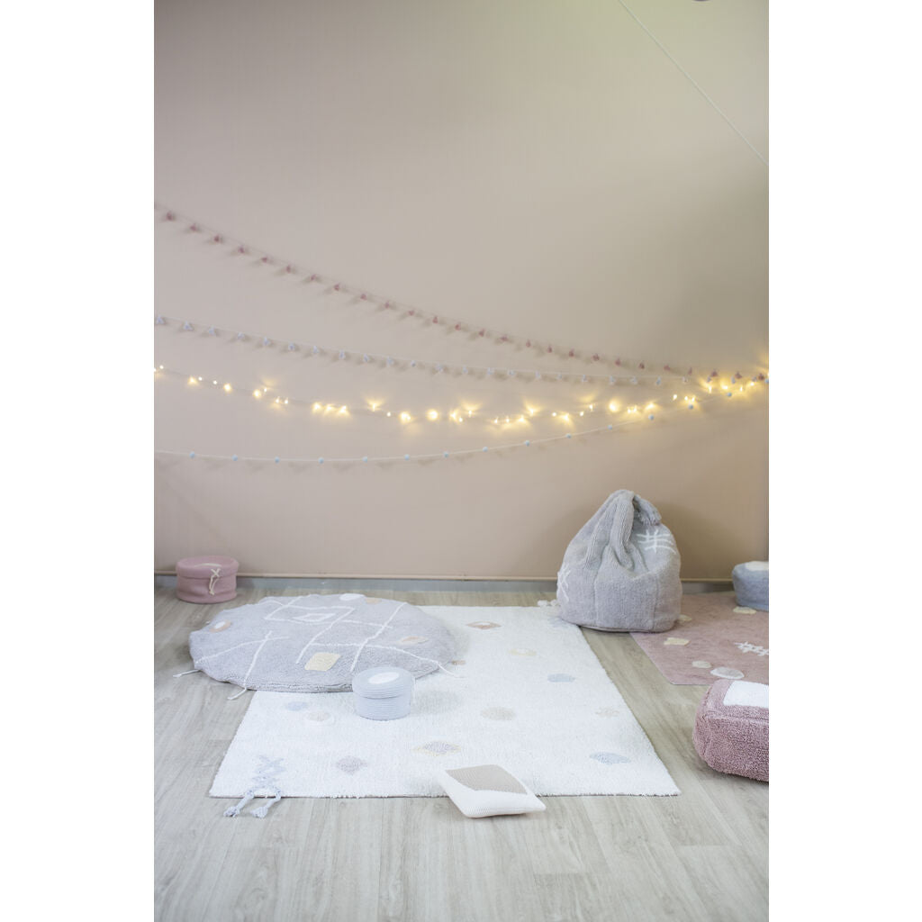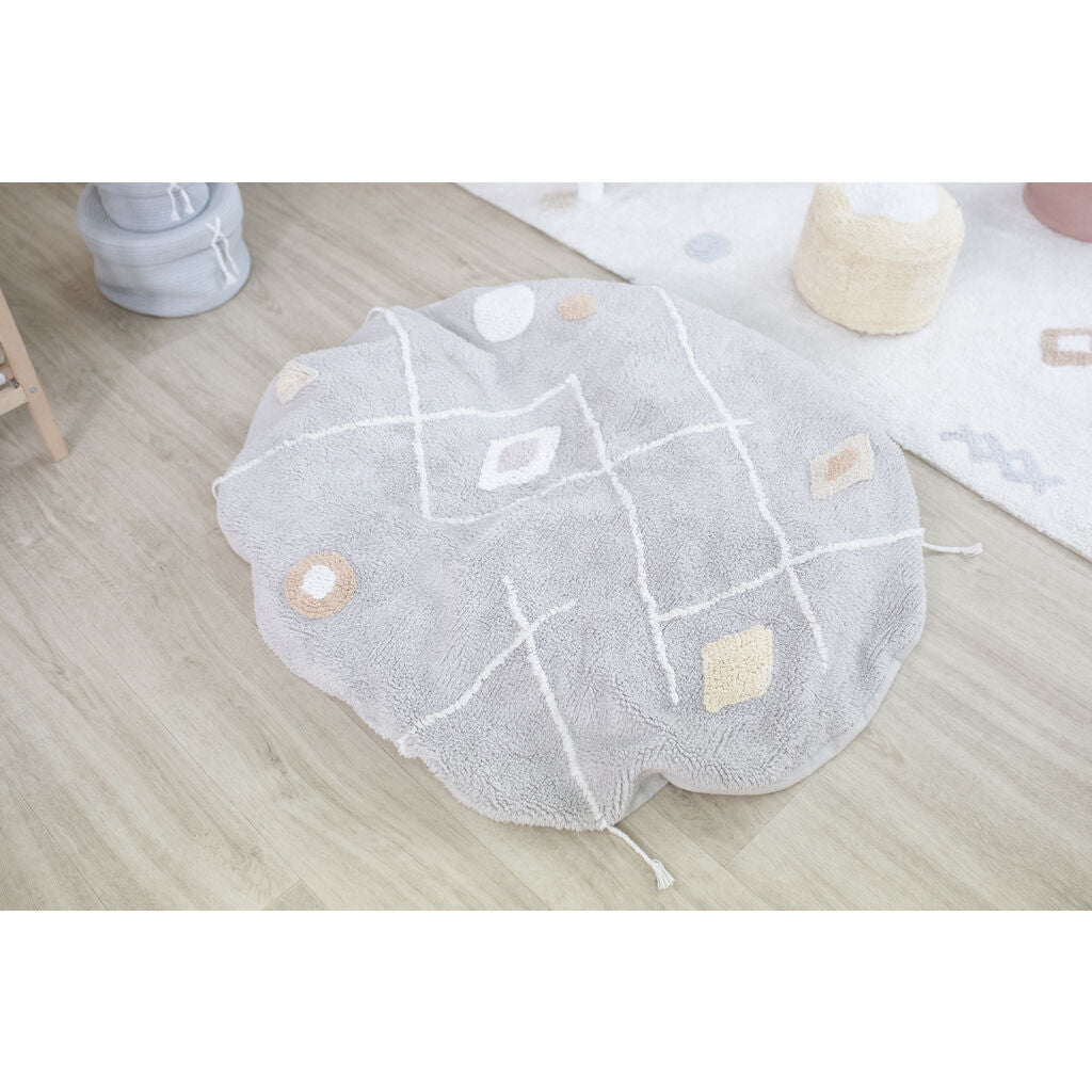 New concept, a 2 in 1 product: meeting the warmth of a rug and the comfort of a pouf. Soft, flexible and easy to move from one place to another within the house, even to your garden! The popular choice of the older infants and toddlers. Adaptable,the filling inside is removable to become a rug: practical to go on the washing machine.