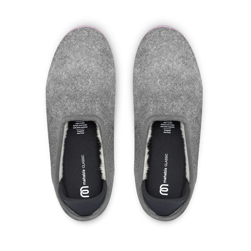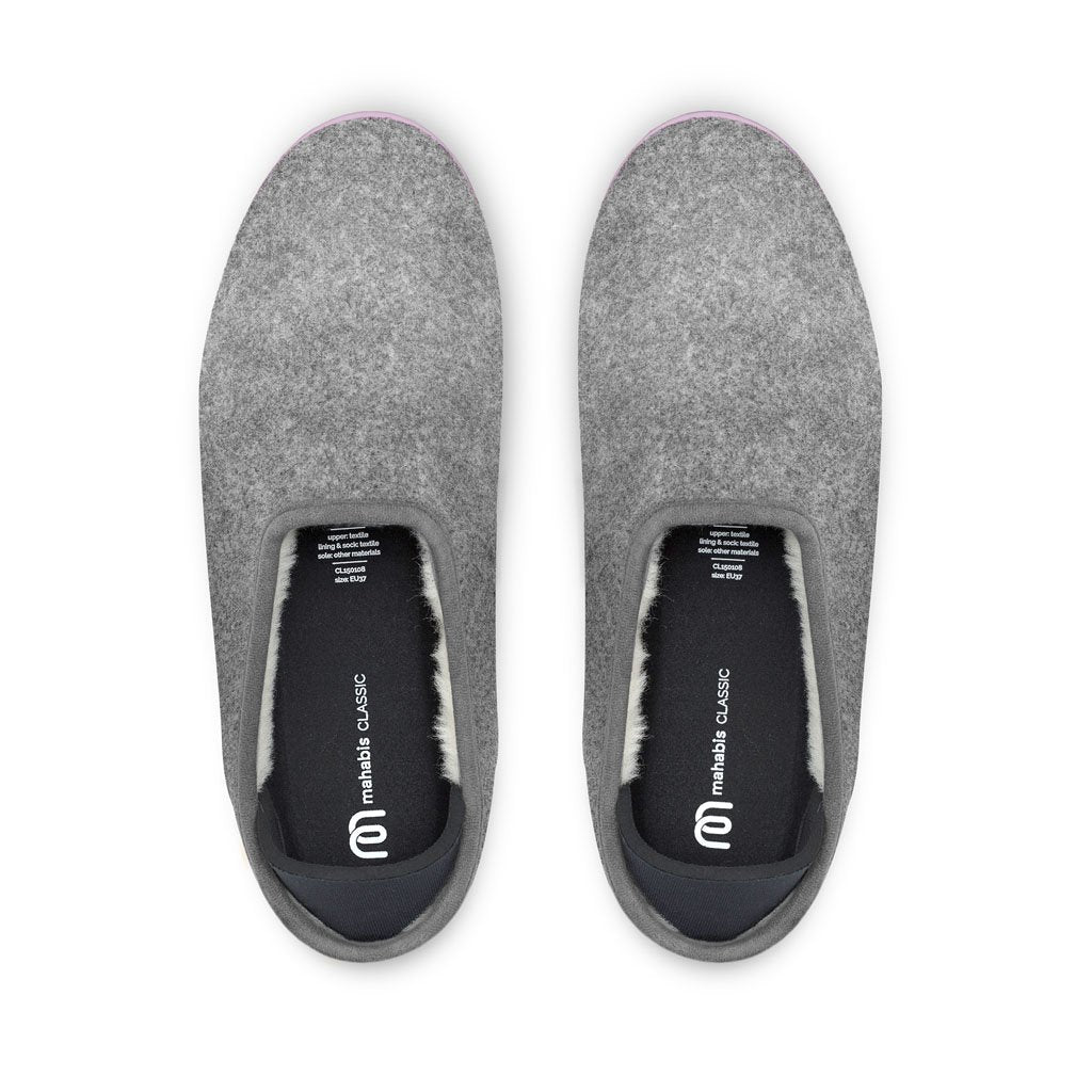Perfect to run errands or to lounge around in, these revolutionary slippers are quick and easy to slip on. The Mahabis classic 2 slipper have a Light Grey upper and Purple soles. The highly durable tpu soles have a multi-surface design, allowing you to wear your slippers all-day, everywhere. The light, snug cushion-fold heels keep the look minimal but comfortably secure. This slipper keeps the warmth in and the cold out. Inspired by Scandinavian design. Featuring a merino wool lining, foam lined insole, durable rubber sole - all in a slimline sleek silhouette. You can go anywhere with this slipper, indoor or outdoor.