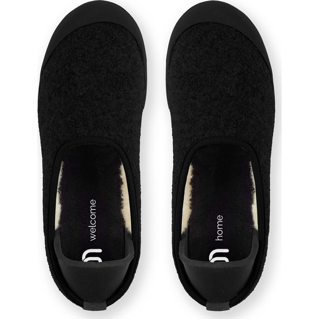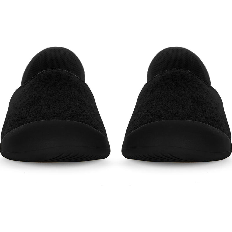 Discover the luxurious comfort of Curve Slippers from Mahabis. Designed to welcome you home. Feel at home no matter where you go with the Curve Slippers. These Europen style slippers have a Black upper and Black soles. These minimal slippers have a lightweight construction, sculpted foam in-sock, and luxurious Italian wool lining made with ReWooly™ a carefully recycled wool that gently compresses tired feet. Versatile rubber sole Mahabis use only responsibly sourced Pura-Latex™ rubber. Designed to improve shock absorption and grip. Made to last so you can enjoy your Mahabis for years to come. Suitable for all day wear, they have a durable sole that is made to last. These sleek ergonomic slippers make a great gift!