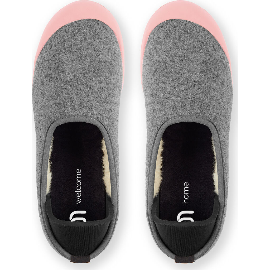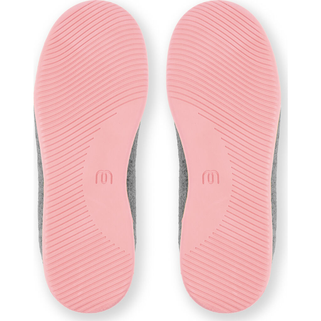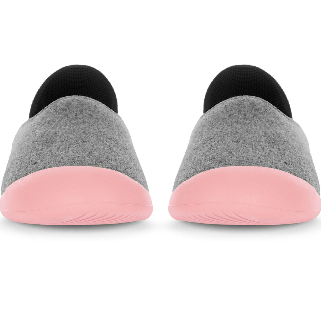 Discover the luxurious comfort of Curve Slippers from Mahabis. Designed to welcome you home. Feel at home no matter where you go with the Curve Slippers. These Europen style slippers have a Light Grey upper and Sakura Pink soles. These minimal slippers have a lightweight construction, sculpted foam in-sock, and luxurious Italian wool lining made with ReWooly™ a carefully recycled wool that gently compresses tired feet. Versatile rubber sole Mahabis use only responsibly sourced Pura-Latex™ rubber. Designed to improve shock absorption and grip. Made to last so you can enjoy your Mahabis for years to come. Suitable for all day wear, they have a durable sole that is made to last. These sleek ergonomic slippers make a great gift!