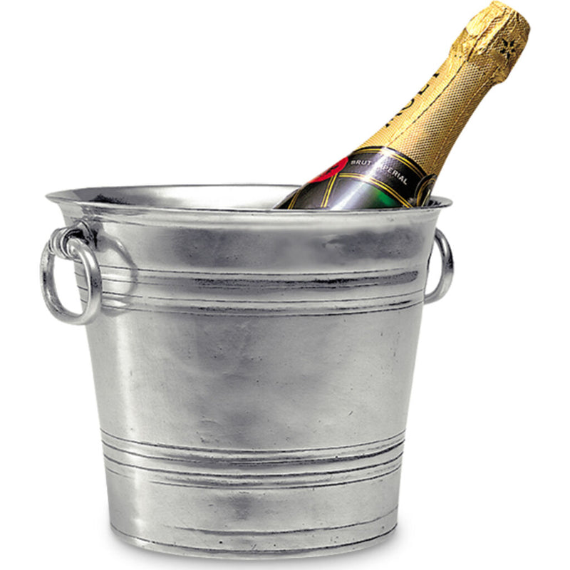 The Match Champagne Bucket offers a classic way to serve your favorite bottle of champagne. Featuring handles, this is a pure Italian pewter bucket. Stands 7-inches tall. Handmade by artisans in Italy, each piece of Match Pewter is made with an alloy that is food safe, lead-free, FDA approved and requires little or no care. Every Match Pewter product contains a stamped symbol from the region of Italy where it was made.