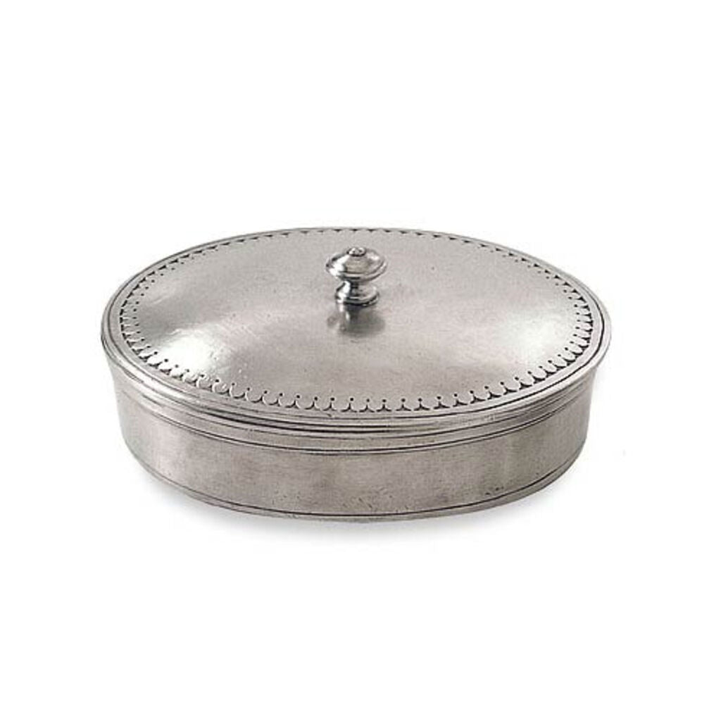 A gorgeous Match Pewter desk or dresser vessel to keep jewelry, change or other small items organized.