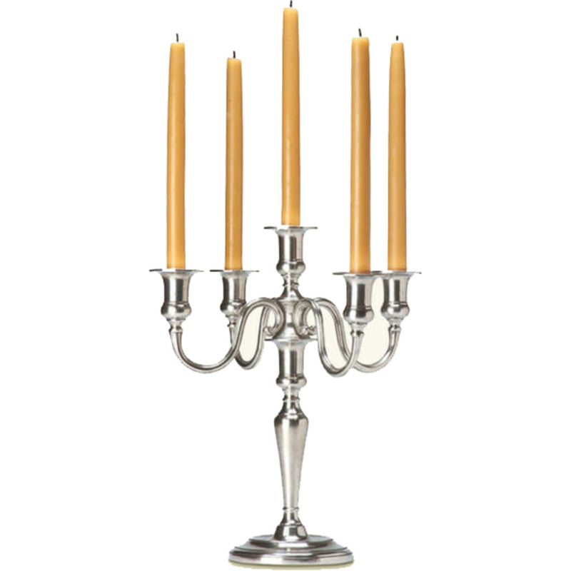 Make a statement on your dinner table or in your home with the Match Pewter 5 flame candelabra. This traditional pewter candelabra holds 5 tapered candle sticks and takes you back in time to a pre-electric Tuscany. The cadleabra measures 14 inches tall and is made of the highest quality pewter available. This 5 candle candelabra will add distinction to any table or home.