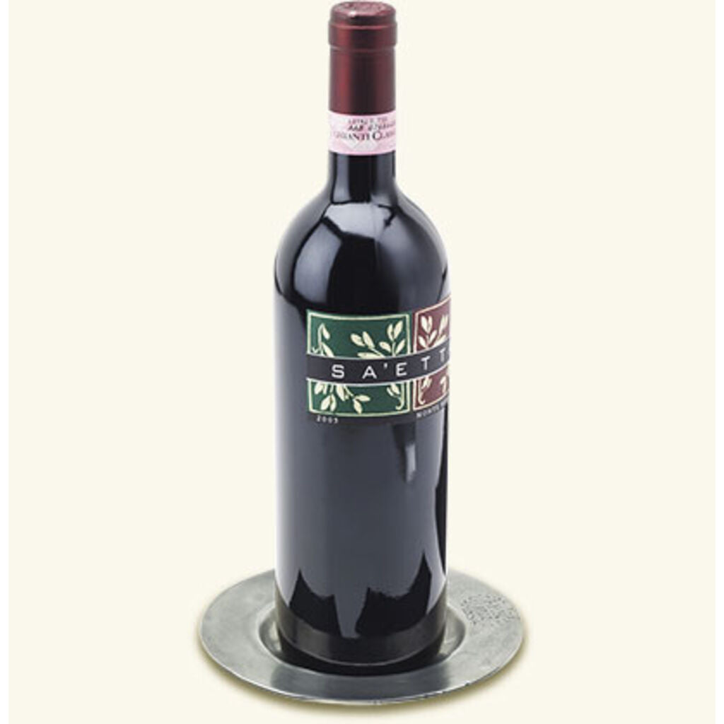 The rustic antique bottle coaster is handcrafted with fine Italian pewter, and beautified with engravings and a well-polished finish.