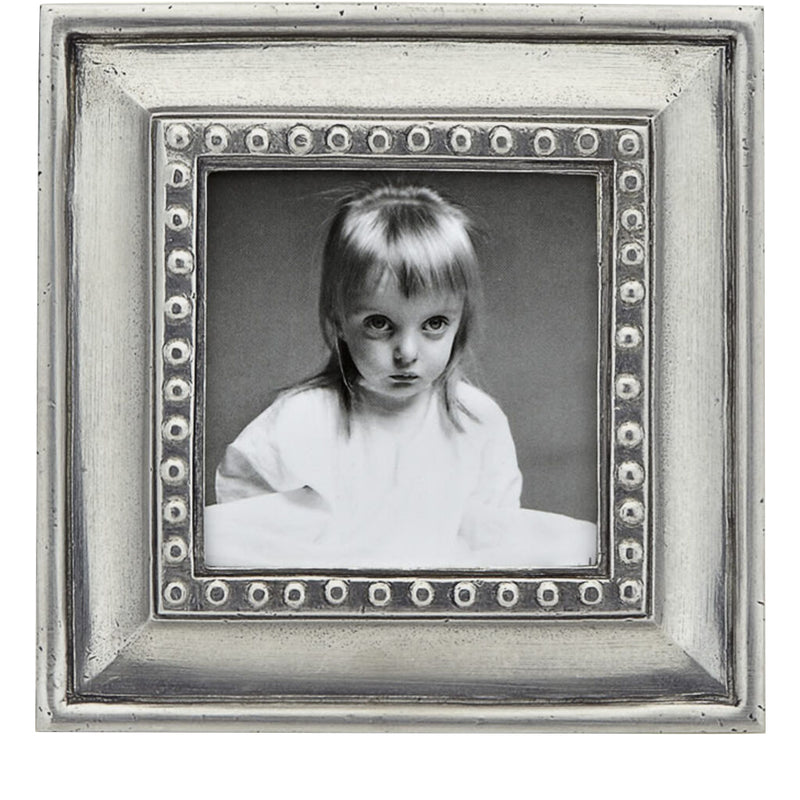 match frames are meant to enhance, not upstage, the photographs or other remembrances held within. Each collection was purposely designed to effortlessly display with the others, as we strongly encourage mixing different styles and shapes in your home or office. Each frame is stamped with hallmarks representing our workshop, our company, the tin content of our alloy and the region of Italy where our pieces are made.