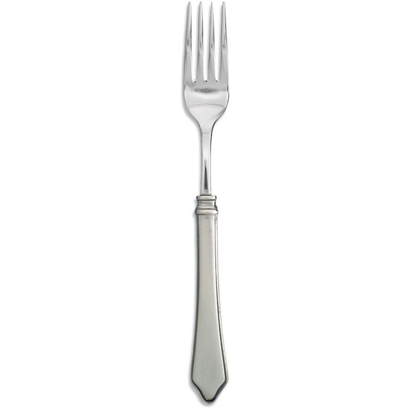 Violetta is the curvaceous cousin of our best-selling Gabriella pattern, and inherited her distinctive architectural details including the thumbnail edge and rounded banded collar. This versatile design is made by casting pewter around 18/10 stainless steel working ends that are then joined and finished by hand, without the use of any adhesives. The knives feature forged stainless steel blades, and all pieces are stamped with the signature hallmarks of our brand.