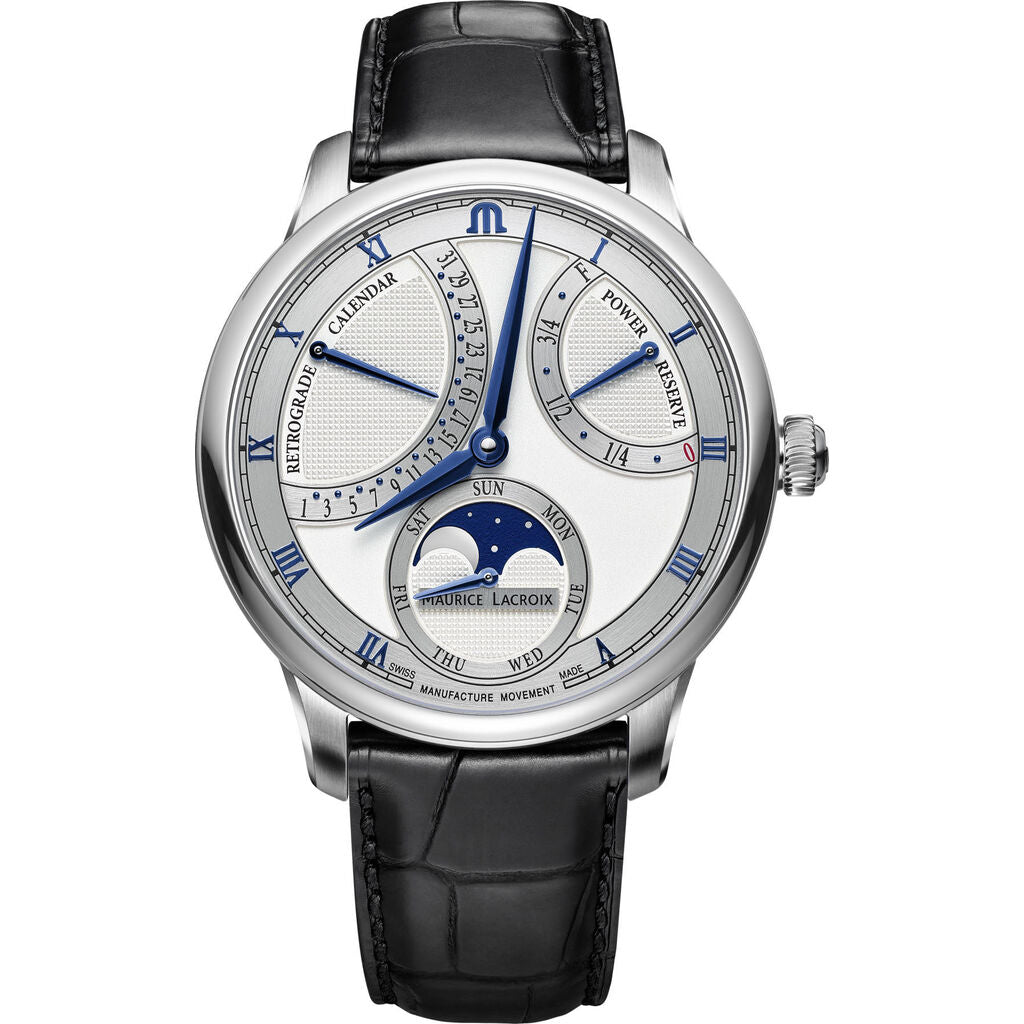 Maurice Lacroix Watch Masterpiece Moon Retrograde Mens MP6588-SS001-431-1. Maurice Lacroix has set itself a clear objective: both through consistent preservation of the long tradition of the Swiss watchmaking art and meeting its high standards, as well as creating, with its very own, innovative complications and movement developments, contemporary design and a heightened passion for detail and perfection. Thanks to its first own manufacture movement and the own production of complex movement components, the brand is now an exclusive Manufacture brand.