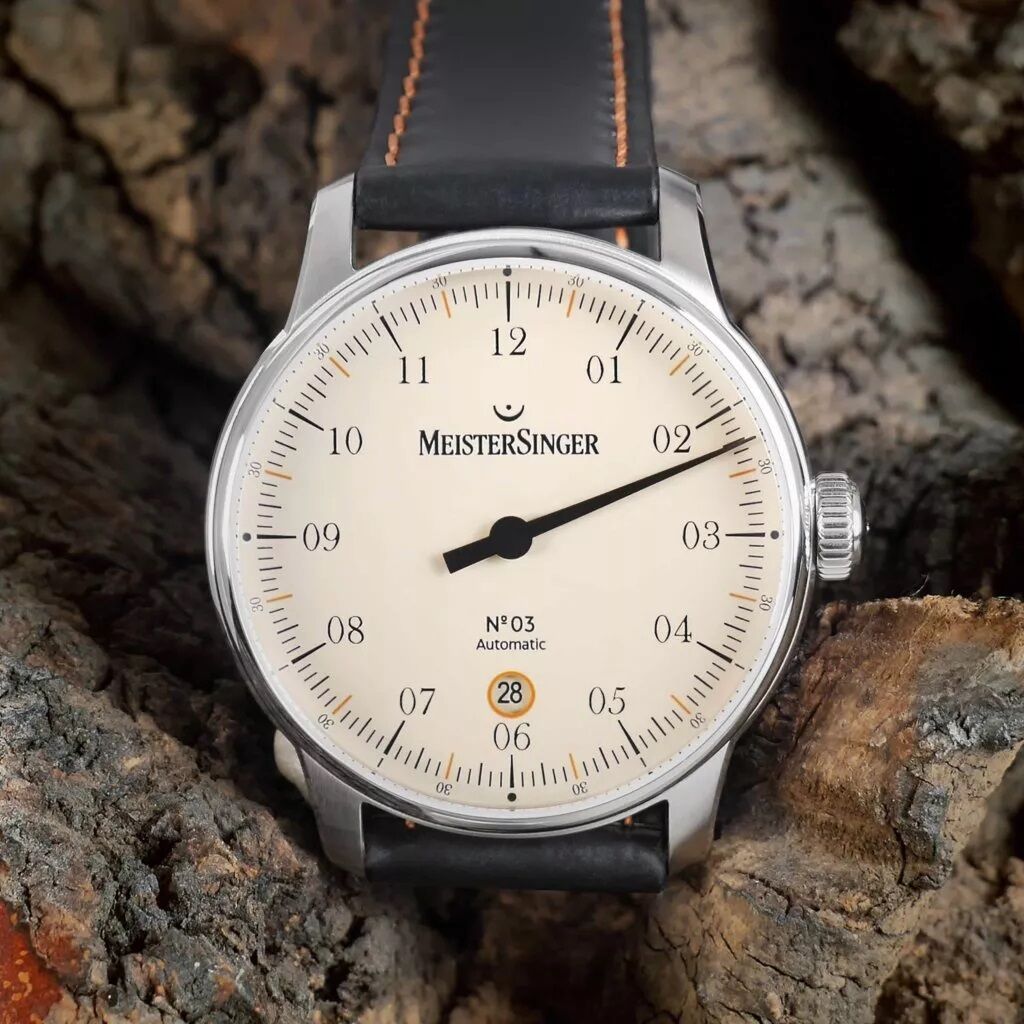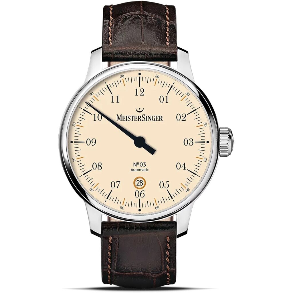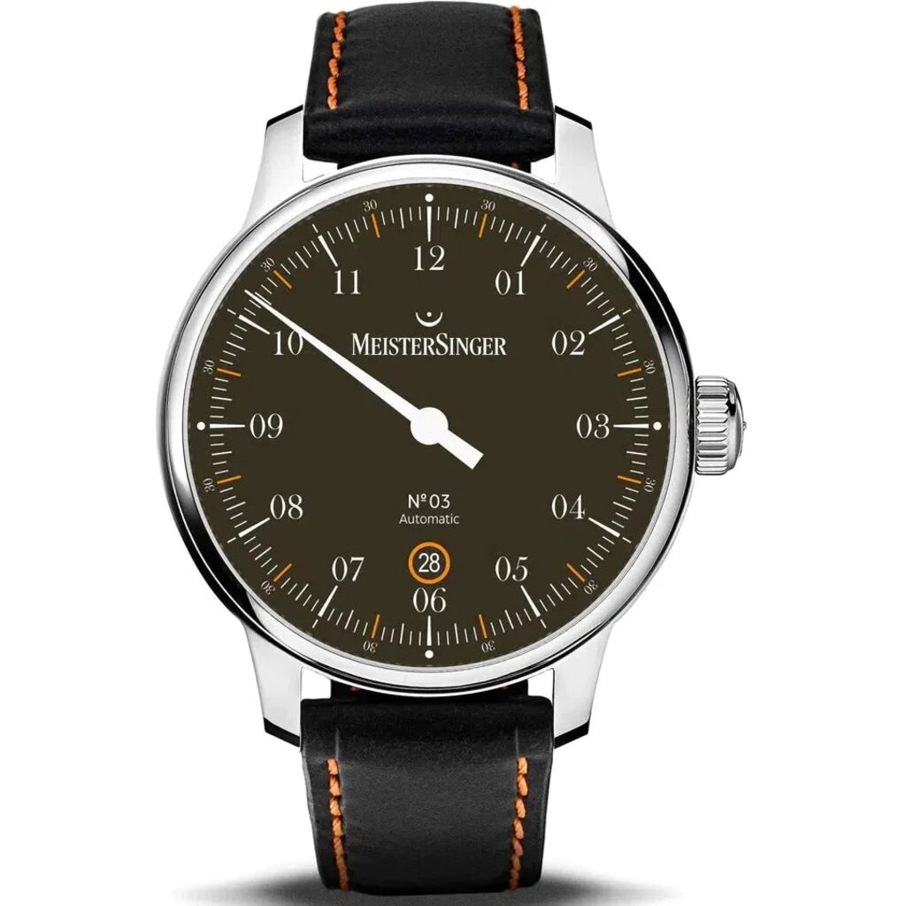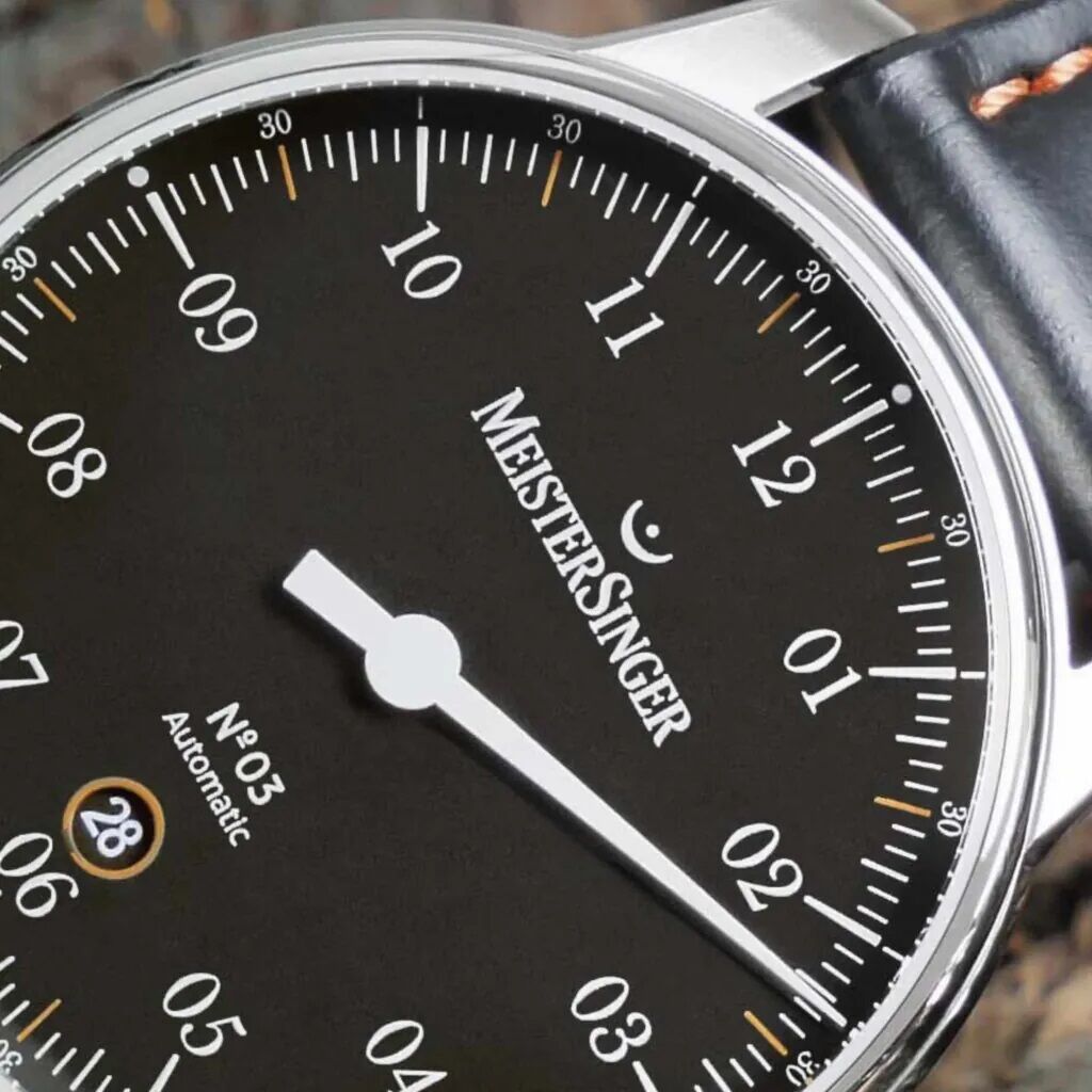 Swiss Precision Movement: The MeisterSinger N°03 boasts the renowned Swiss Sellita SW200 automatic movement, meticulously modified for single-hand watches. Experience unparalleled precision and reliability in timekeeping.