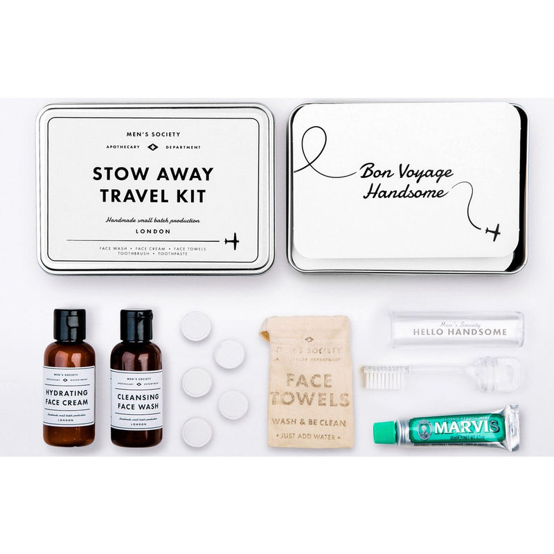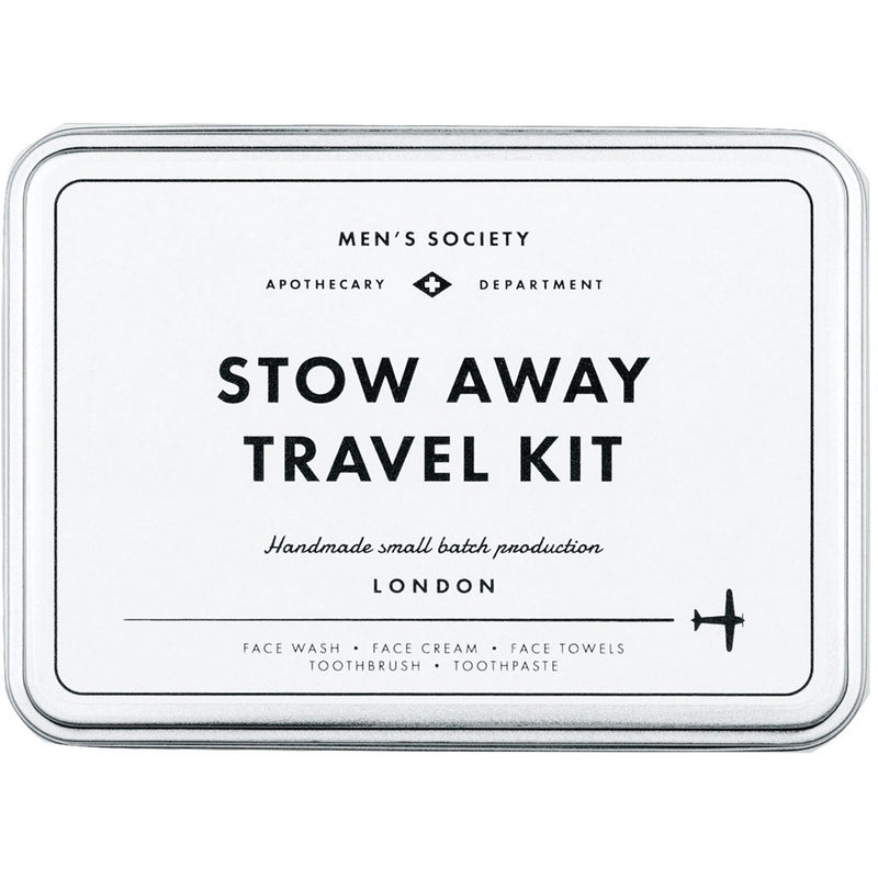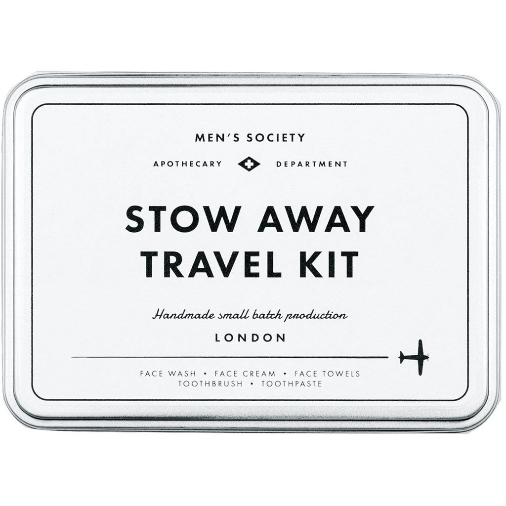 Don't lose your sophistication when you travel, take a Men's Society Stow Away Travel Kit with you. Includes a cleansing face wash, hydrating face cream, disposable face towels (they expand in water!), toothbrush and toothpaste. This stylish metal tin contains everything you need to look your best and complies with aircraft hand-luggage regulations!