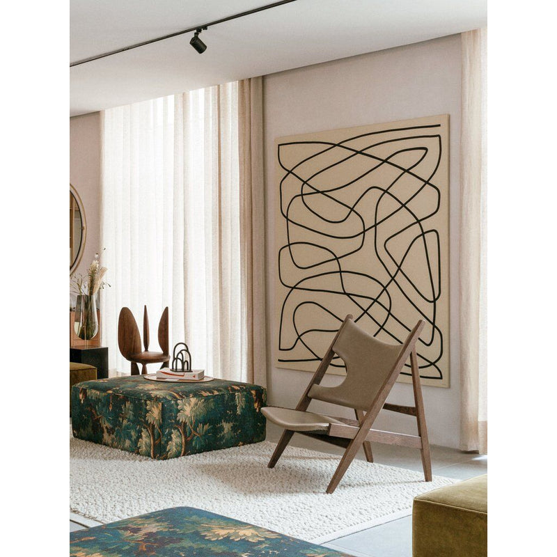 The Knitting Chair by Ib Kofod-Larsen, first launched as a limited edition in 1951, makes a triumphant return to the world of modern Danish design under Menu's concept of "Modernism Reimagined". This is the brand's first foray into classic furniture. The chair's sense of proportion and unparalleled quality makes it a natural choice to bring into contemporary interiors. The playful nature of the Knitting Chair serves to highlight its thoughtful design. Named for the elbow cut-outs that allow maximum comfort while knitting (or reading), the chair is clearly the work of a master designer.