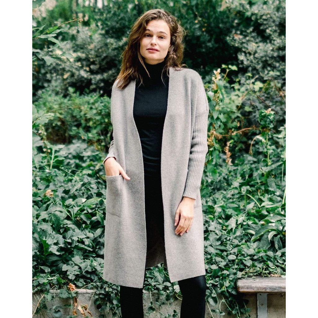 There really is nothing quite like traveling in luxury. Which is why Mer Sea crafted this comfortable yet chic duster silhouette in the softest natural materials for an idyllic sensory experience. Spacious pockets on the side are perfect for holding a phone, passport and boarding pass. All the while thick sleeves and a long elegant back keep you warm and stylish. Whether you're at your favorite restaurant or just surviving a layover, the Hampton is your ticket to perfect travel fashion.
