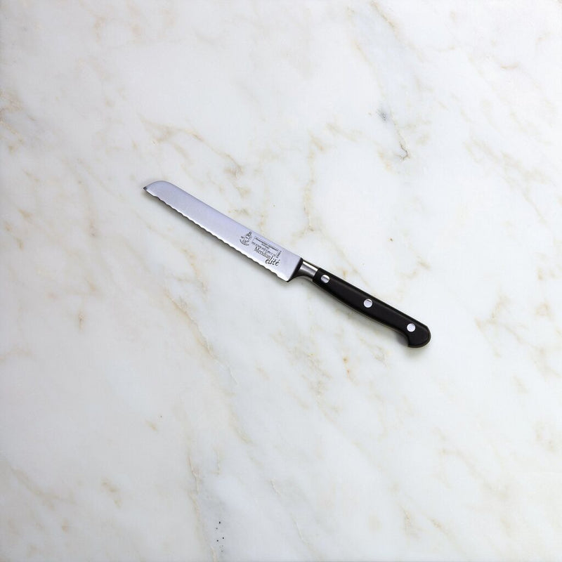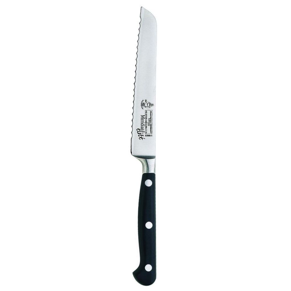 The Messermeister Meridian Elite 5” Scalloped Utility Knife is a go-to for a wide variety of tasks in the kitchen. With a scalloped edge, this traditional style utility knife is one of the most frequently used. It's a favorite for prep, cutting cheeses, breads, pastries and even carving small game birds.