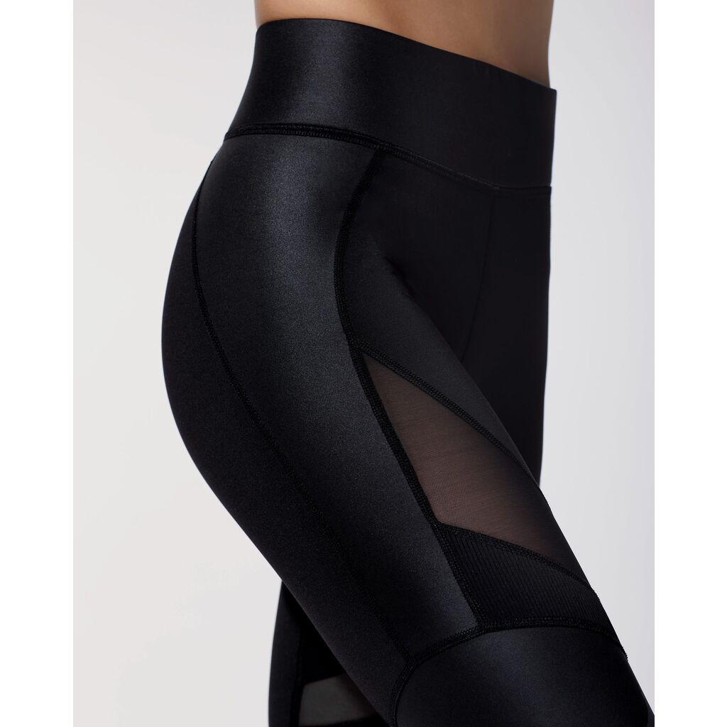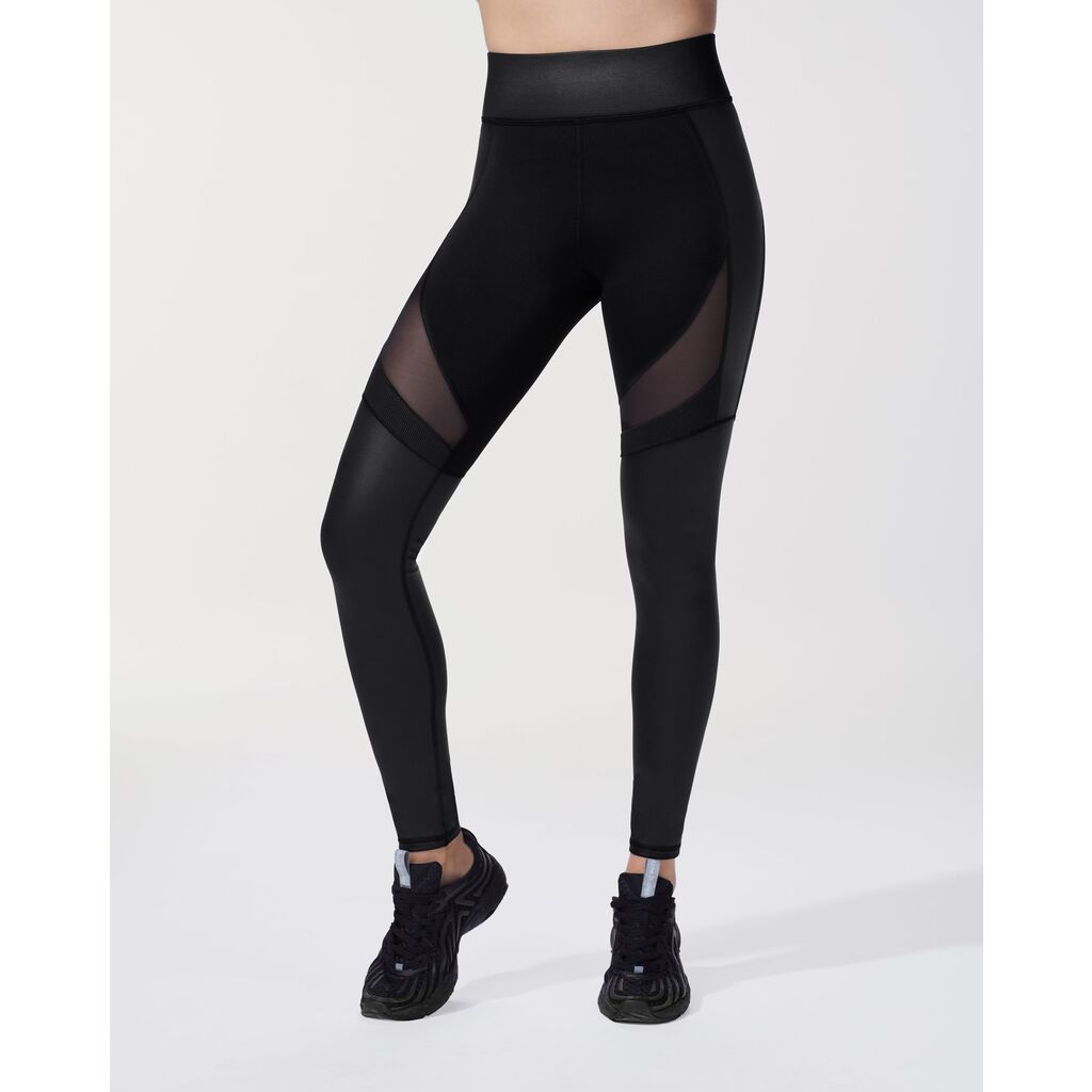 High performance full length legging with technical mesh, ribbed and Liquid Gloss fabrics that sculpt and accentuate your body. The 3” Shaperband also smoothes the midsection and stays tight during even your toughest workouts.