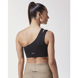 Figure-hugging and supportive with coverage, this one shoulder silhouette is elevated by a shoulder cut-out. A wide chest band adds extra support during movement.