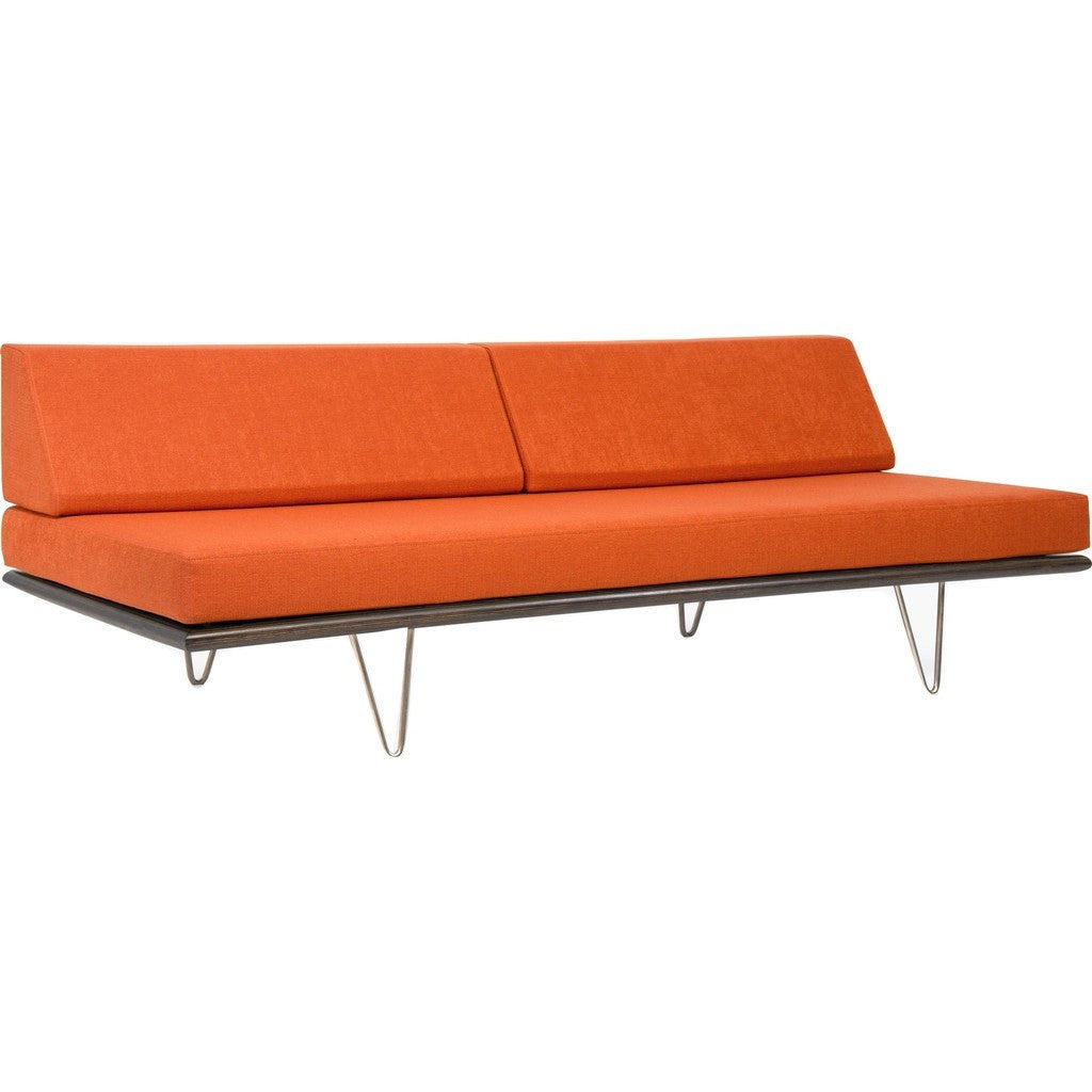 Modernica's Daybed is designed as a step up from the ordinary Daybed: exquisitely crafted, using the finest materials and meticulous design for a gorgeous, durable piece. The Daybed is made with one-and-half-inch thick high-quality laminated hardwood framing that provides exceptional longevity and ages beautifully. Concealed metal springs provide extra give, while the design makes the Daybed easy to double as a guest bed by merely removing the bolsters. Rich Walnut finish adds an element of class and refinement to the design. V-legs round out the aesthetic, giving the appearance almost of floating on air. Innovative and beautiful from start to finish, this will become the centerpiece of your home.