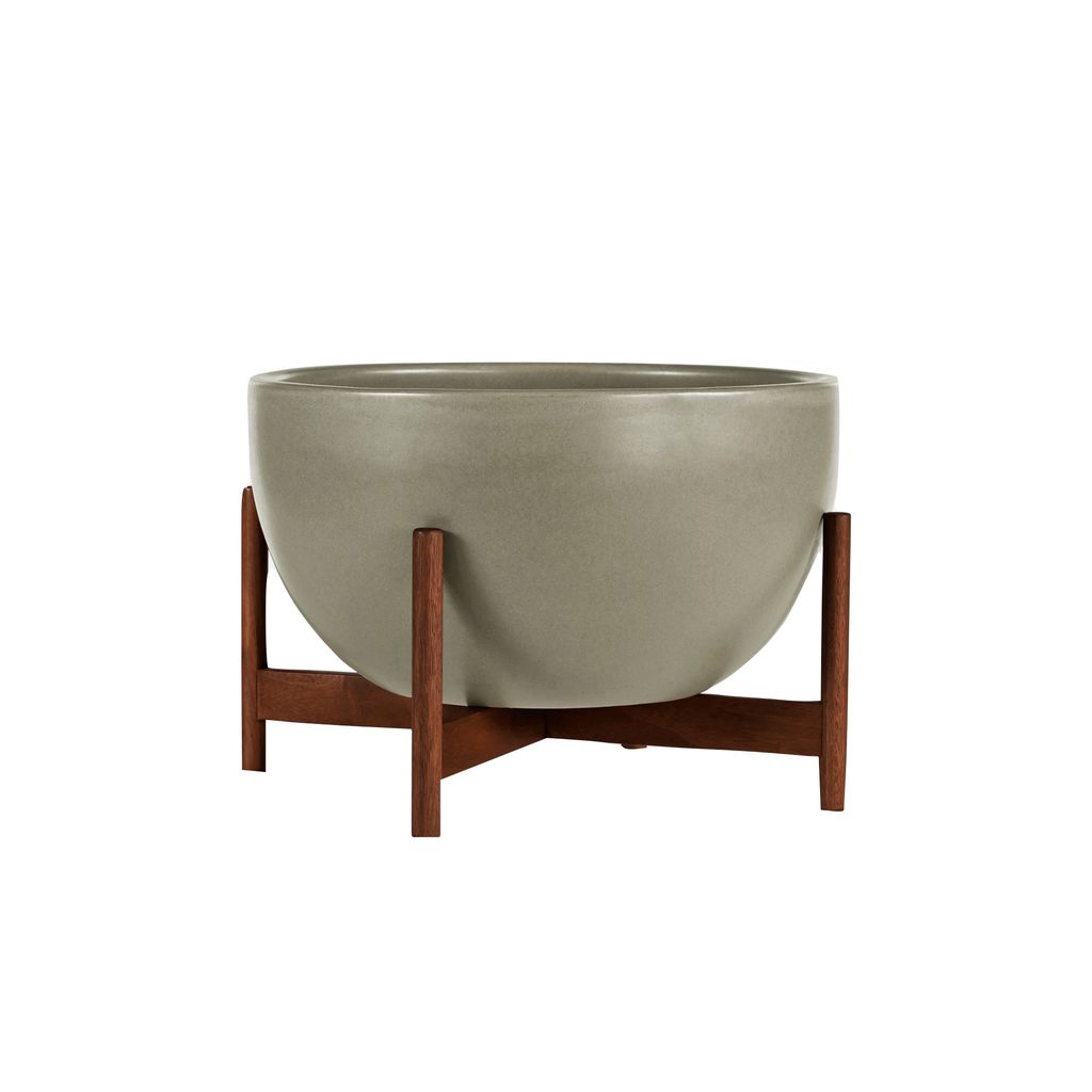The Case Study Small Ceramic Bowl in pebble comes with either a metal or wood stand. Featuring Modernica's renowned elegance and minimalist design, something that, in its simplicity, will fit almost anywhere in the home. With the rich, contrasting tones of matte ceramic and powder-coated steel, this bowl is suitable as an art piece alone. This bowl planter is perfect for your bedroom or kitchen!