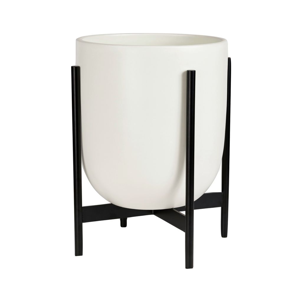 The clean and fresh White Case Study Bullet Planter has an architectural form and contemporary aesthetic. Crafted from high-fired stoneware and finished with a powder-coated steel base, Modernica's Bullet Planter is ideal for a wide variety of vegetation from small trees and shrubberies, to vibrant floral arrangements. Great for your living room, bedroom or office!