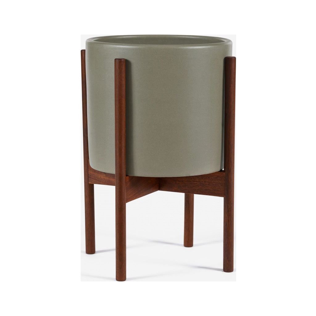 The Case Study Small Cylinder in pebble comes with either a wood or ash base. Featuring Modernica's renowned elegance and minimalist design, something that, in its simplicity, will fit almost anywhere in the home. With the rich, contrasting tones of matte ceramic and polished wood, this Cylinder is suitable as an art piece alone. This is the perfect sized planter for your favorite plant!