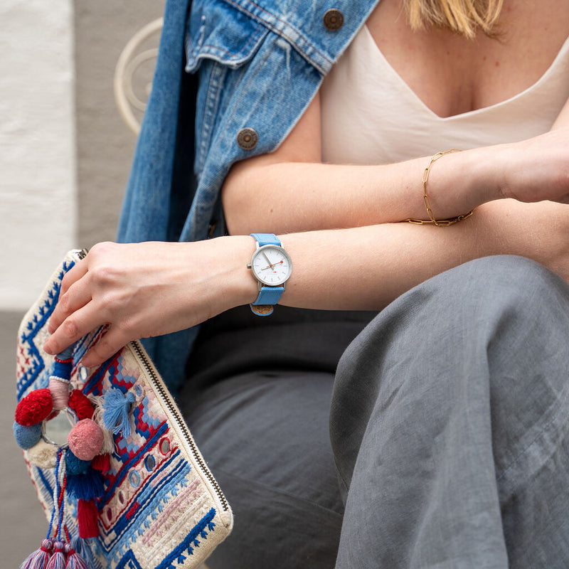 2021 Spring Summer collection inspired by the colors of a summer sunset, featuring an Aquarius strap. Mondaine is maintaining its commitment to minimizing harm to the planet and has created a fresh range of straps for its Classic collection made from recycled PET bottles. The straps also bring a fresh look to the Classic, which never drifts far from the design of the Official Swiss Railways clocks.