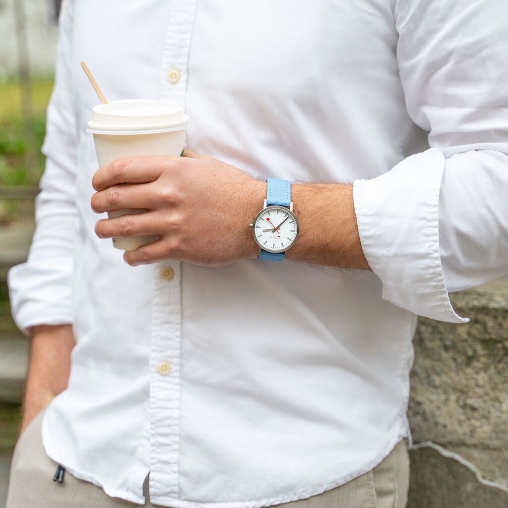 Mondaine Classic Official Swiss Railways Watch | White/Aqua