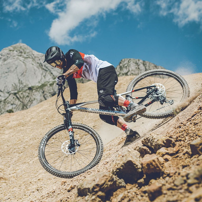 Heavy enduro riders will love the safety and confidence offered by Mondraker's proprietary forward geometry design. Forward geometry also helps with improved handling, overall control, uphill precision, and stability in tough terrains.
