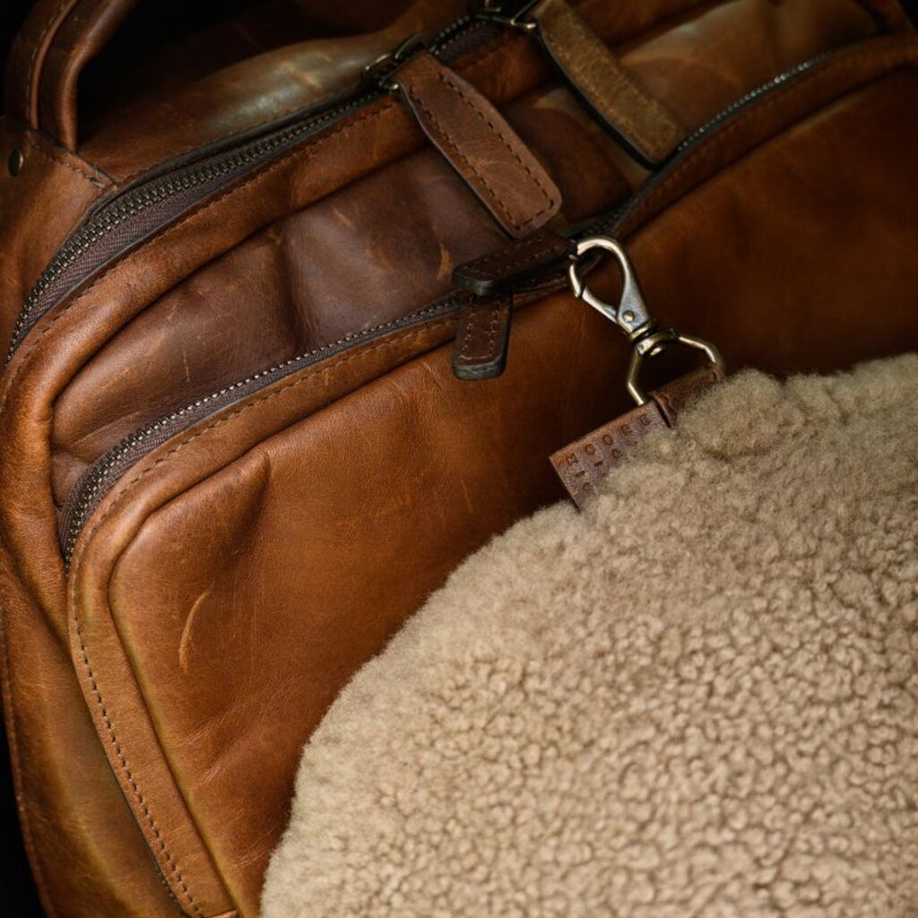 Aviators of old would be jealous of this shearling ruff. Our Shearling neck pillow guarantees that at least your naps will be first class when you’re on the road or in the air. The close-cropped shearling is eye-catching and cozy to be sure, but it also allows air to circulate between your skin and the pillow, keeping you from overheating. The small brass clip at the back of the pillow can be attached to a travel bag for safe-keeping when not in use!