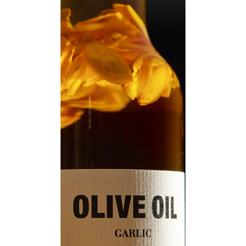 • Extra virgin olive oil 91.5%. dried garlic 8%. flavouring.