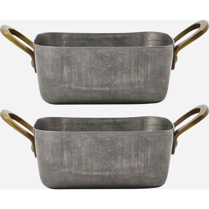 Take your dishes straight from the oven to the table in individual portions. Your guests are in for a memorable dining experience with this set of 2 mini roasting dishes from Nicolas Vahé. They are made of stainless steel with brass handles for an informal yet stylish look. Use them to serve delicious meals in a pub-like vibe. Food presentation matters for the overall dining experience, and with the range of miniature tableware called Presentation, your dinners are on point. Max temperature: 250°C / 480F. Suitable for electric and fan-assisted ovens. Suitable for electric and gas hobs, but not for induction hobs. Hand wash only. Please note that discoloration may occur over time as the items are subjected to heat. This is common for stainless steel but has no impact on the safety or performance.