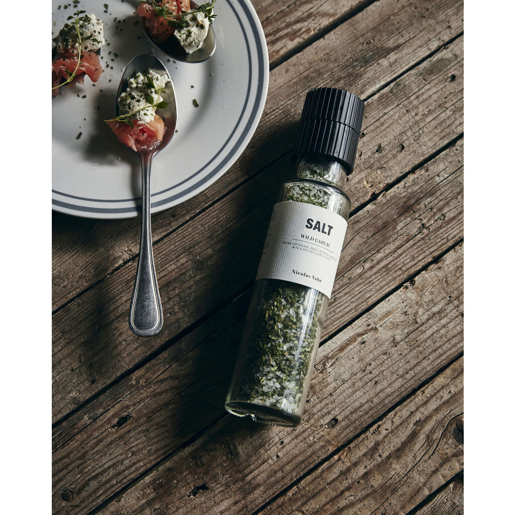 With a light and delicate garlic flavor, wild garlic is the perfect seasoning. Use this salt blend from Nicolas Vahé as a finishing garnish on steaks, roast potatoes, and dips. Instead of overwhelming your tastebuds, it adds a delicate and balanced garlic note that elevates any dish. The mill comes with a ceramic grinder which gives you finely ground spices. This releases the oils for more aroma and flavor in your dishes.