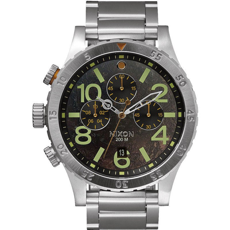 The Nixon 48-20 Chrono Watch is scaled to fit any situation. An alternative to the norm, inspired by speed and torque measuring instruments, the wide eye 48-20 chronograph watch is a nod to watch aficionados everywhere, as to what's under the hood.