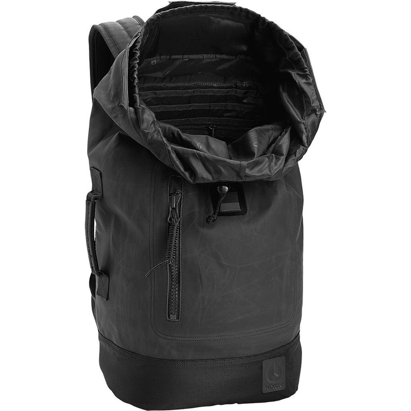 The Origami 2 from Nixon is a large-sized, versatile backpack crafted using a black distressed PU coated canvas body. A great choice for both your work commute and trail adventures, the main compartment features a military style closure system accompanied by an internal cinch closure for maximum protection. Padded shoulder straps and an air mesh back padding ensures comfort even with large loads. Did we mention that Nixon travels the world making sure their bags live up to anything? Well the sophisticated details like a side entry laptop zipper compartment, internal organizer, watch pocket, and leather details sorta speak for themselves...