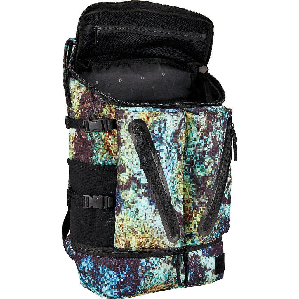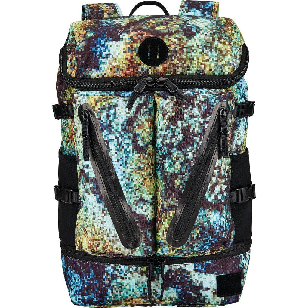 The Nixon Scripps Backpack brings a new format to the Nixon line with dual front compartments featuring diagonal access, sealed zippers. The top-loading main compartment provides easy access to a spacious interior, while a bottom access compartment adds some separation for extra organization. The Riffe Digi-Tek Camo color scheme is sure to catch some eyes and set you apart. Get the perfect balance with the Scripps Backpack - cinch it down as needed on the sides and throw in a water bottle to stay hydrated.